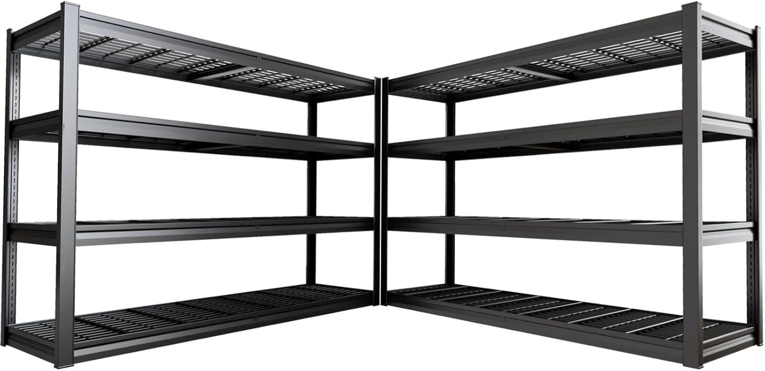 - 【Perfect for Multi-Scenario Storage】Ideal for garage shelving, workshop storage, or commercial shelving needs, this 67-inch-wide unit effortlessly organizes automotive parts, power tools, bulk supplies, or seasonal gear. Its double-layer wire decks and adjustable 4-tier design adapt to garages, warehouses, basement or shop shelves, while the 650 lbs/shelf capacity and wobble-free structure ensure safe, space-saving storage for heavy or oversized items.