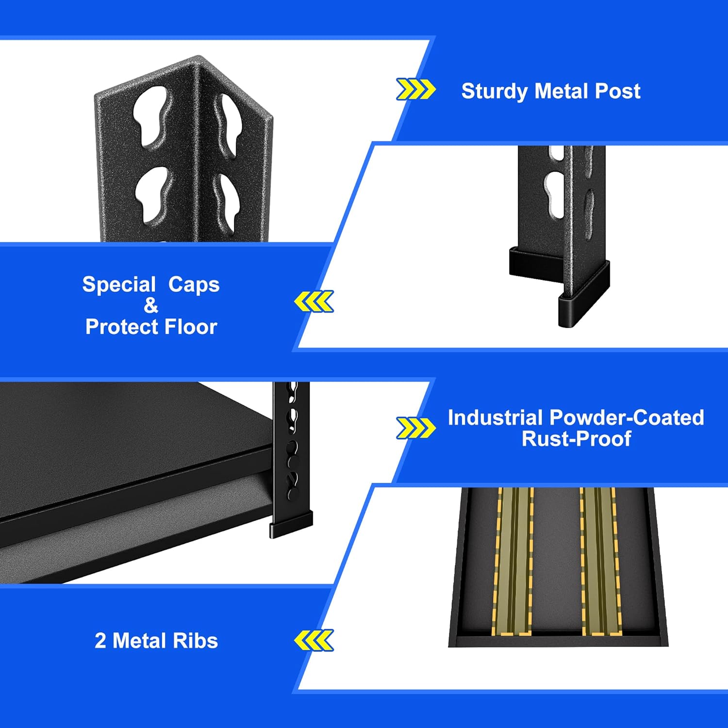 - 【Safe&Rust-Proof】The entire all-metal shelves are locked by pins to ensure crossbeams stay seated and 4 support straps to prevent twisting or spreading. The powder-coated finish on the steel uprights, support straps, and crossbeams, easy to clean, moisture-proof and rust-proof.