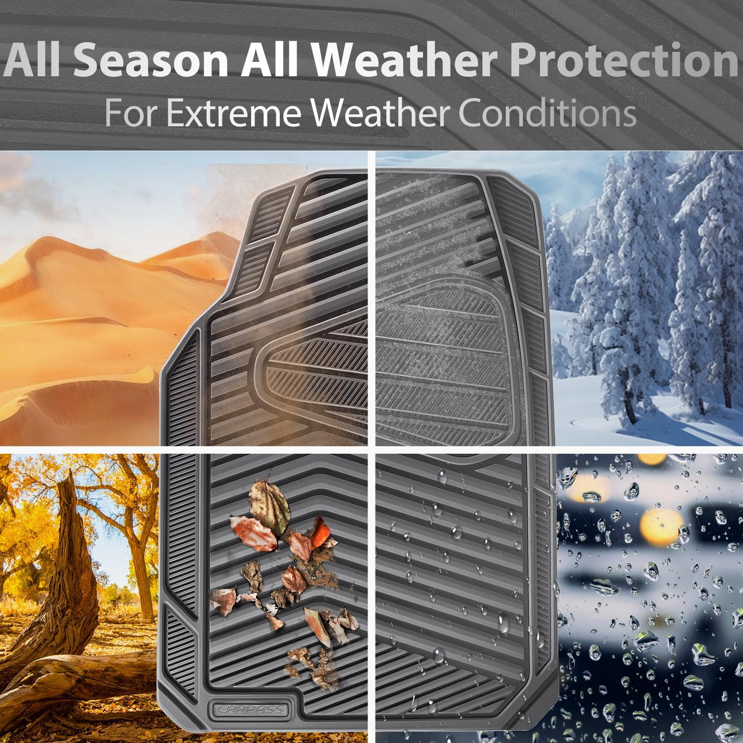 - HEAVY DUTY RUBBER ALL WEATHER FLOOR MATS: CAR PASS all gray heavy duty rubber car mats use for all season.Easy to clean. Made with FlexTough polymers that resist cracking and warping. These grey rubber car mats stay flexible yet strong in extreme temps.specifically design to prevent fluids from leaking onto carpets,the gray automotive floor mats also trap any mud, dirt, water or snow that gets in your car, Ideal for gray car floor mats for cars, gray car floor mats for small trucks, and gray all weather car floor mats needs.