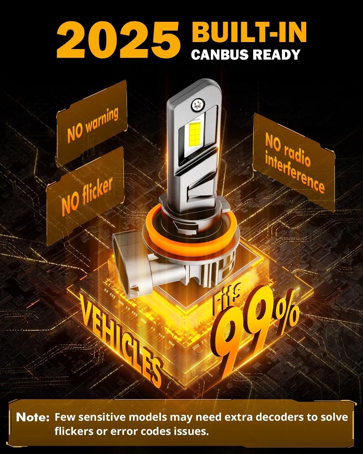 - 99% Super Compatible: Built-in intelligent decoding chips, highly compatible with 99% models' system without causing errors and flickers. Note:1% sensitive models still need decoders. Please message auxbeam to help slove the problem.