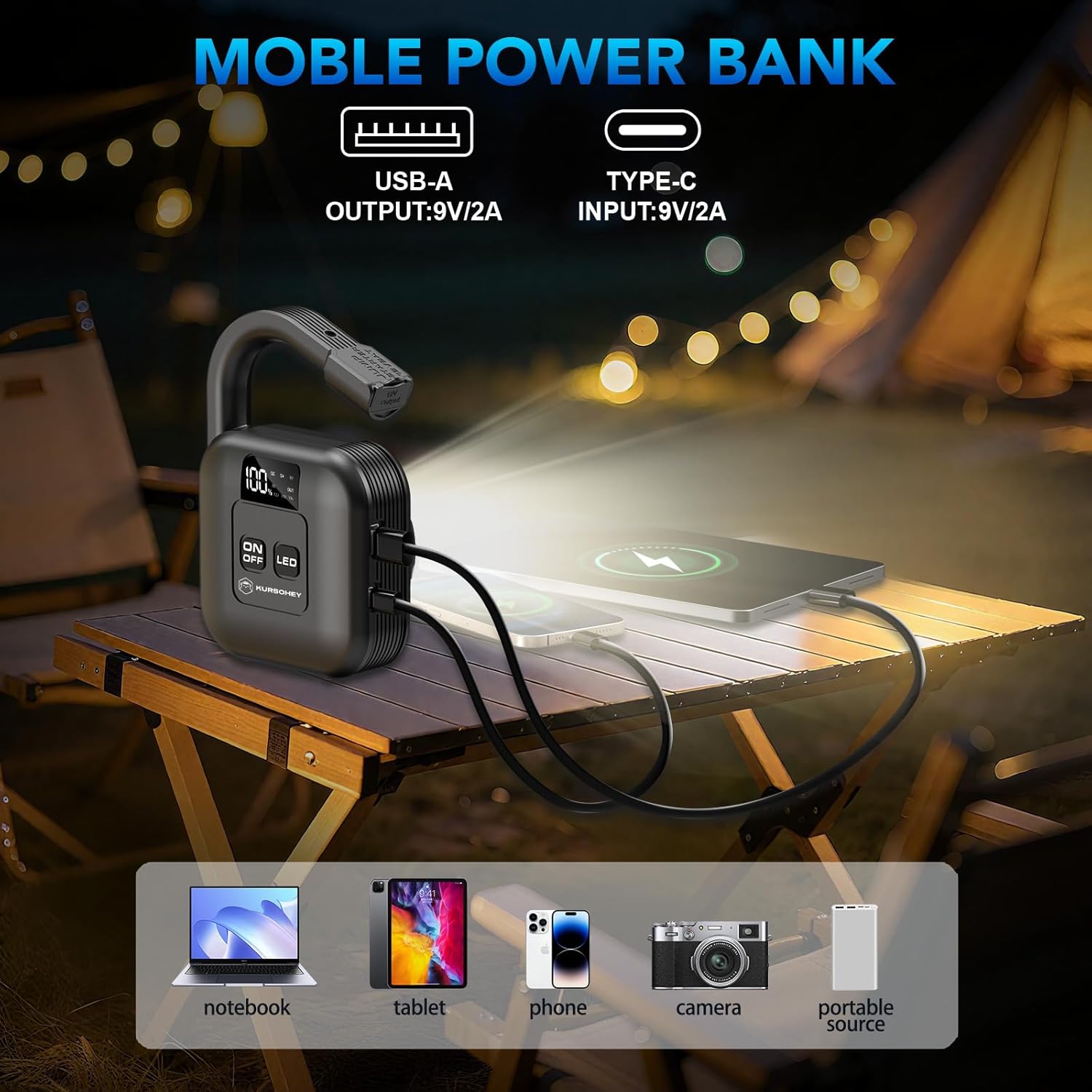 - Intelligent Display & Multi - Voltage Charging equipped with a clear intelligent screen, it shows power level, input, and output voltages at a glance. Offering QC, 5V, 9V, 12V, 16V, 19V outputs, it’s not just for jump - starting. It can charge your phones, tablets, and other USB - powered devices, serving as a handy solution for both emergencies and daily charging needs.