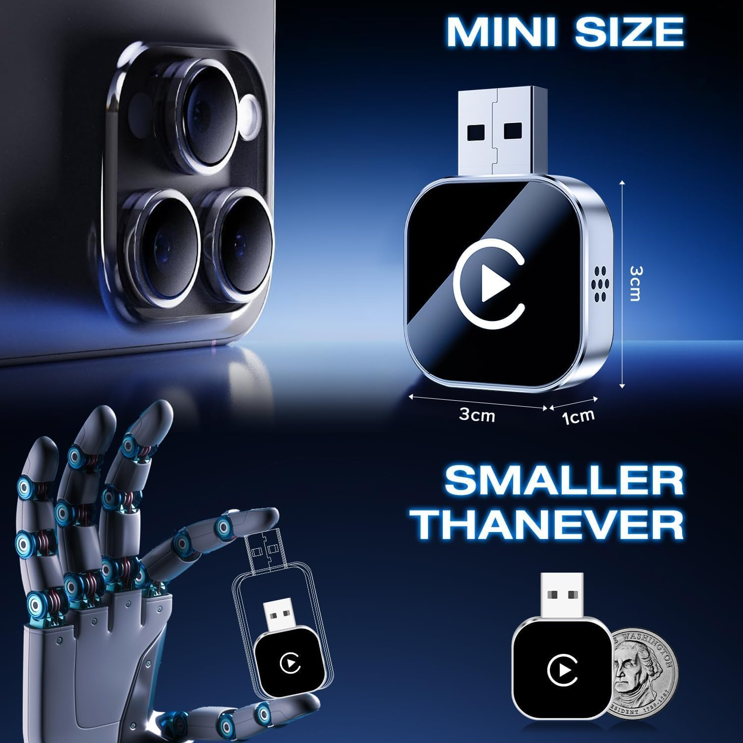 Wireless CarPlay Adapter for iPhone, Convert Wired to Wireless CarPlay Adapter, Mini Size with Extension Cable USB & USB-C/Type-C, Stable Car Control & No Delay