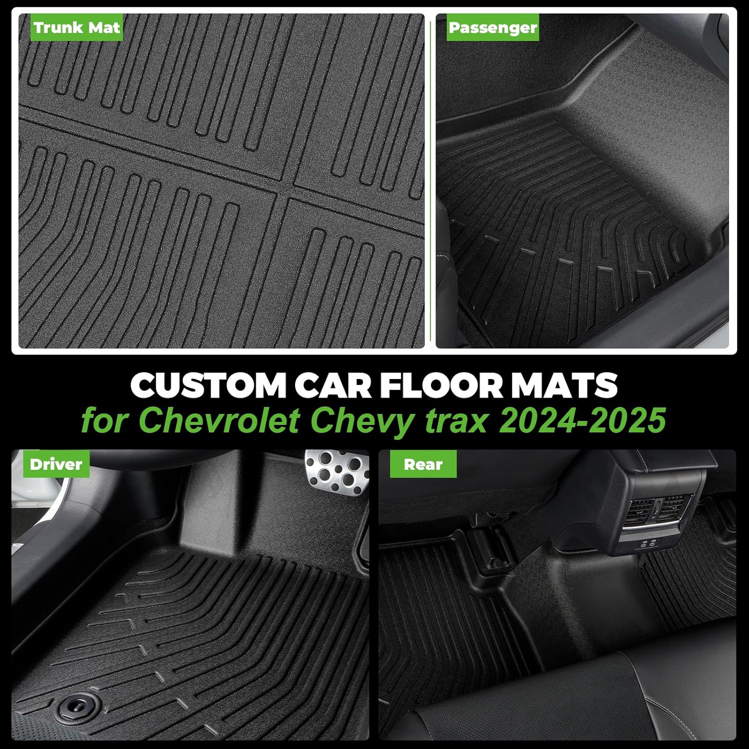 - 【All-weather Protection】Chevy Trax 2024 2025 all-weather foot mat are not easily deformed or broken even in cold weather. The ergonomically designed channels and raised edges effectively capture liquids, sand, snow, etc., and protect the vehicle floor well. Bringing you a safer and more comfortable in car environment.