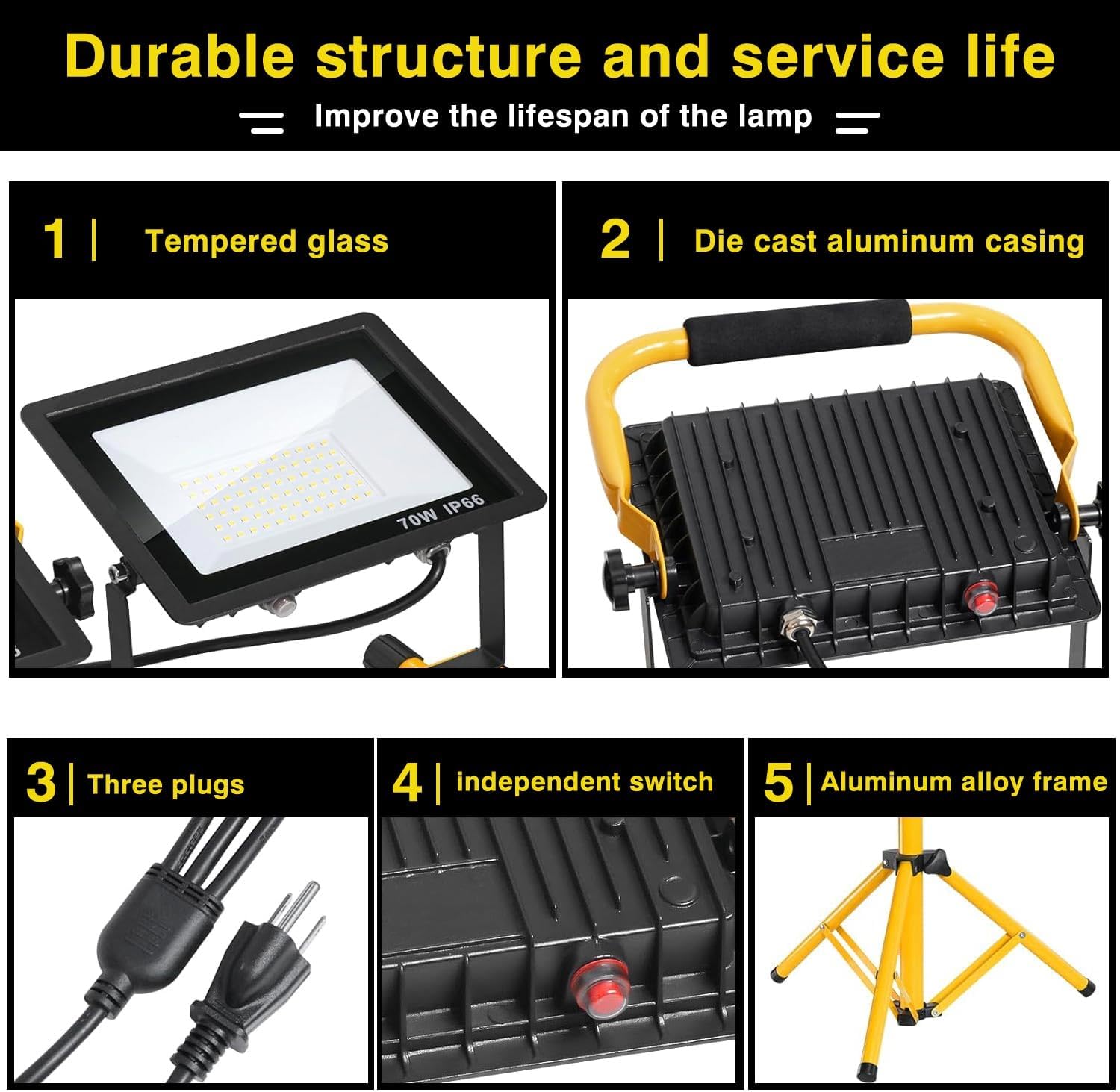 - Super Bright LED Light Source:21000LM ultra bright tripod LED work light with a color temperature of 6500K. It provides bright, pure white, and easily focused light, meeting the needs of different conditions and comfortable environments with minimal energy consumption.