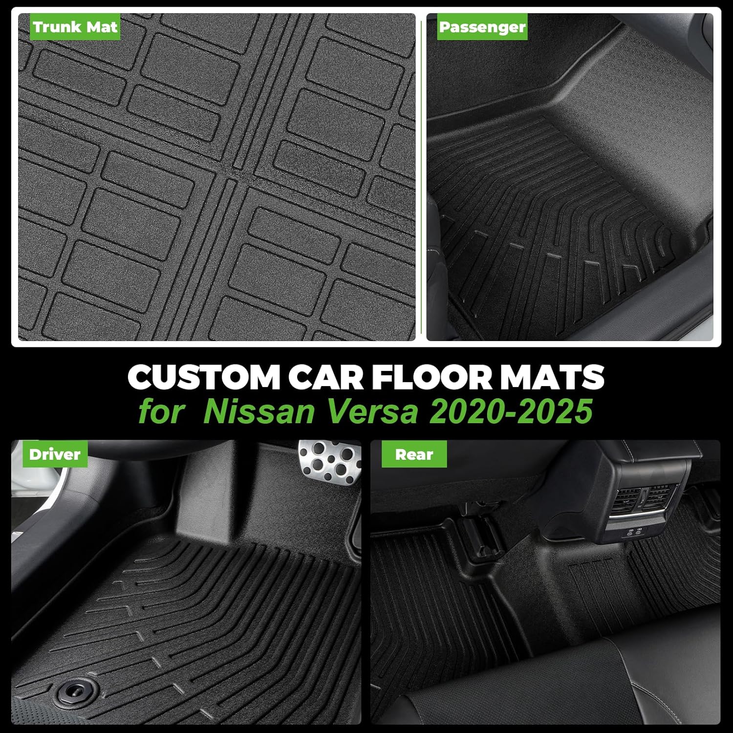 - 【Precise Fit】Suitable for 2020-2025 Nissan Versa all-weather foot mats and cargo mats. Through 3D laser scanning technology, accurately cover your car carpet and fit your car like a glove. During the design process, attention was paid to details such as throttle and brakes, which will not affect your driving experience.