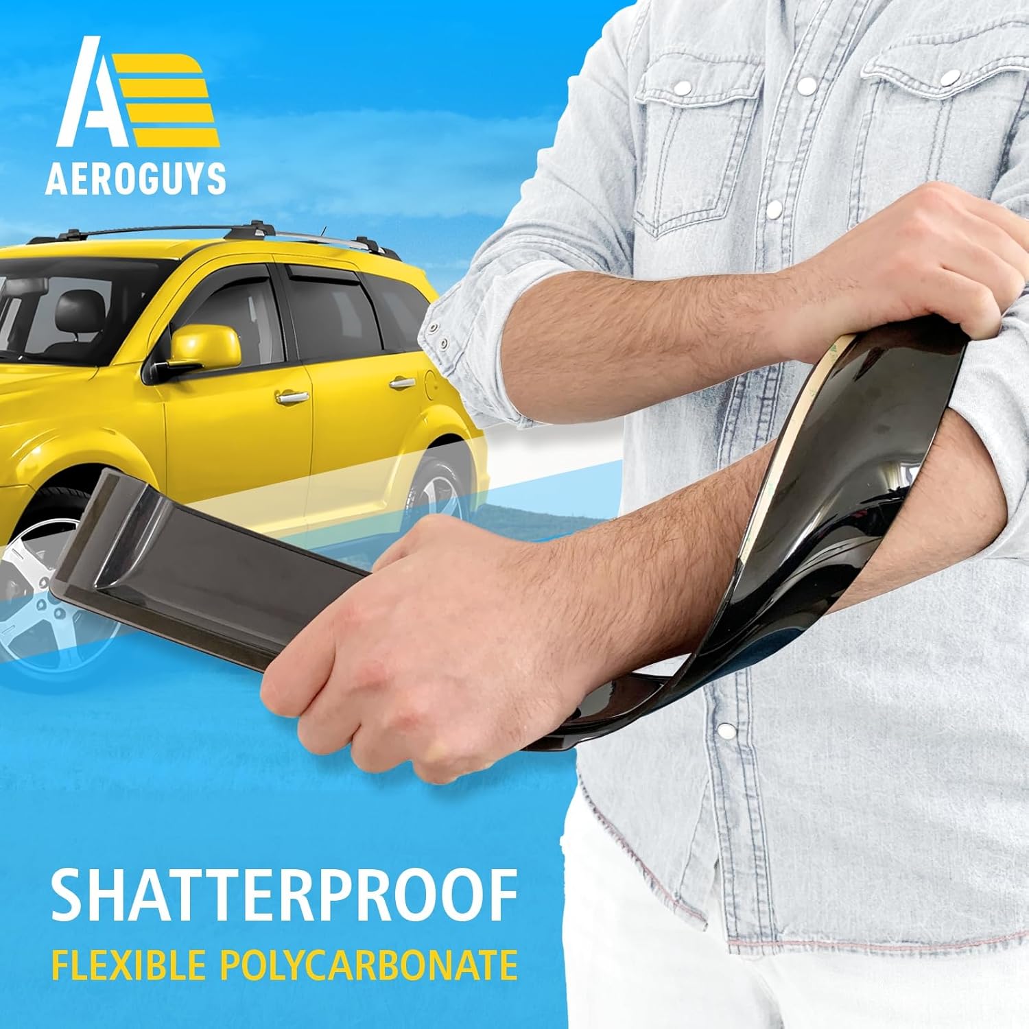 - Incredibly Durable AEROGUYS Auto Window Deflectors – They are made with strong and tough polycarbonate which is clear and scratch-resistant. They also provide UV protection making your ride more comfortable under all weather conditions.