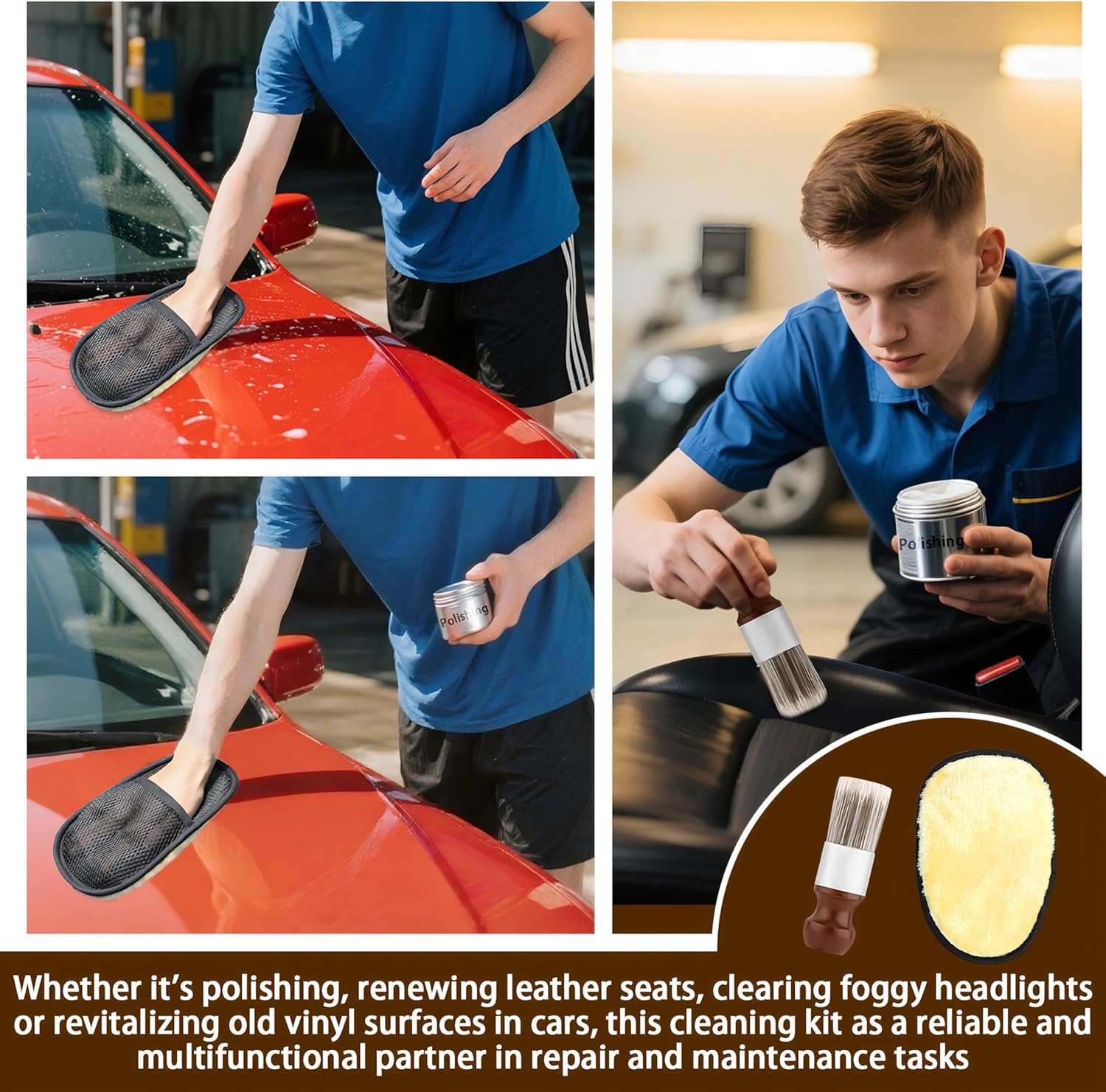 - 【Leather Brush Car Detailing】The salve brush & glove set is ideal for cleaning and maintaining leather furniture, wooden items, car interiors, bags, shoes, and more. Great for home, office, or automotive detailing