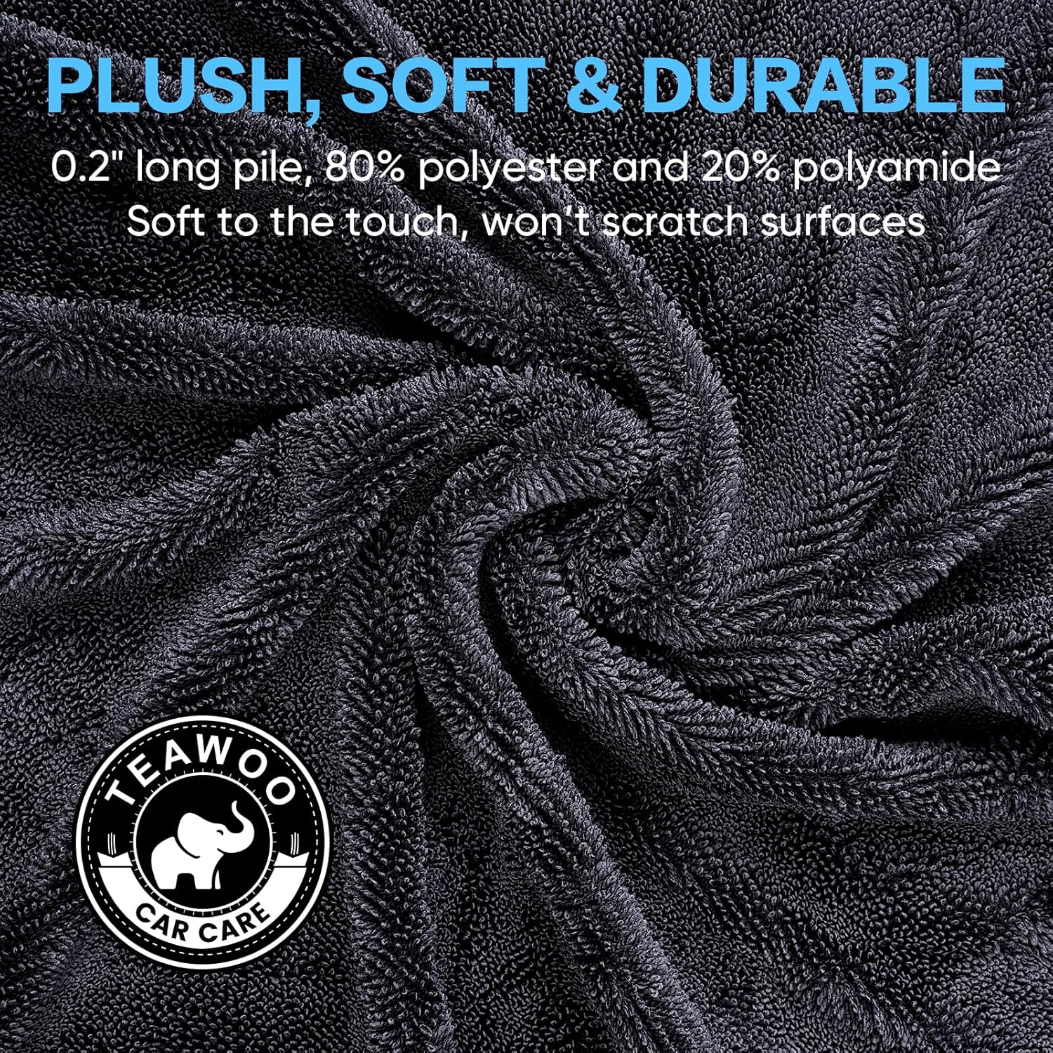 - 【SUPER ABSORBENT & FAST-DRYING FOR ALL SURFACES】Our microfiber towel absorbs up to 8x its weight in water, drying cars (after washes/rain) and home surfaces (bathroom tiles, glass, countertops) in no time. Saves effort whether detailing your car or cleaning up spills.