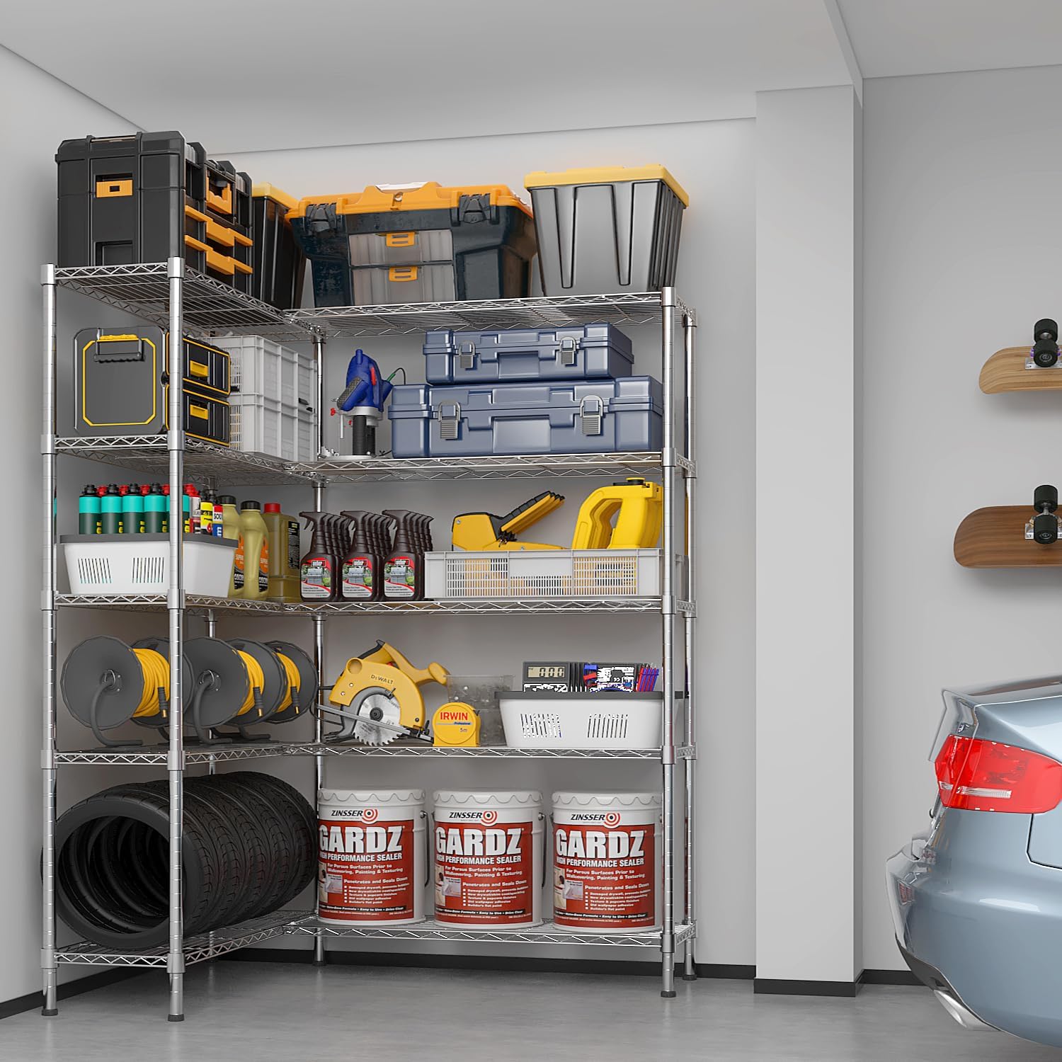 VINGLI 5 Tier Storage Shelves 1430LBS Heavy Duty Metal Shelving, Upgraded 58" W Garage Shelving Unit, Adjustable Wire Shelf for Storage Rack Commercial Pantry Shelf Organizer, 58" W × 13.8" D × 71" H