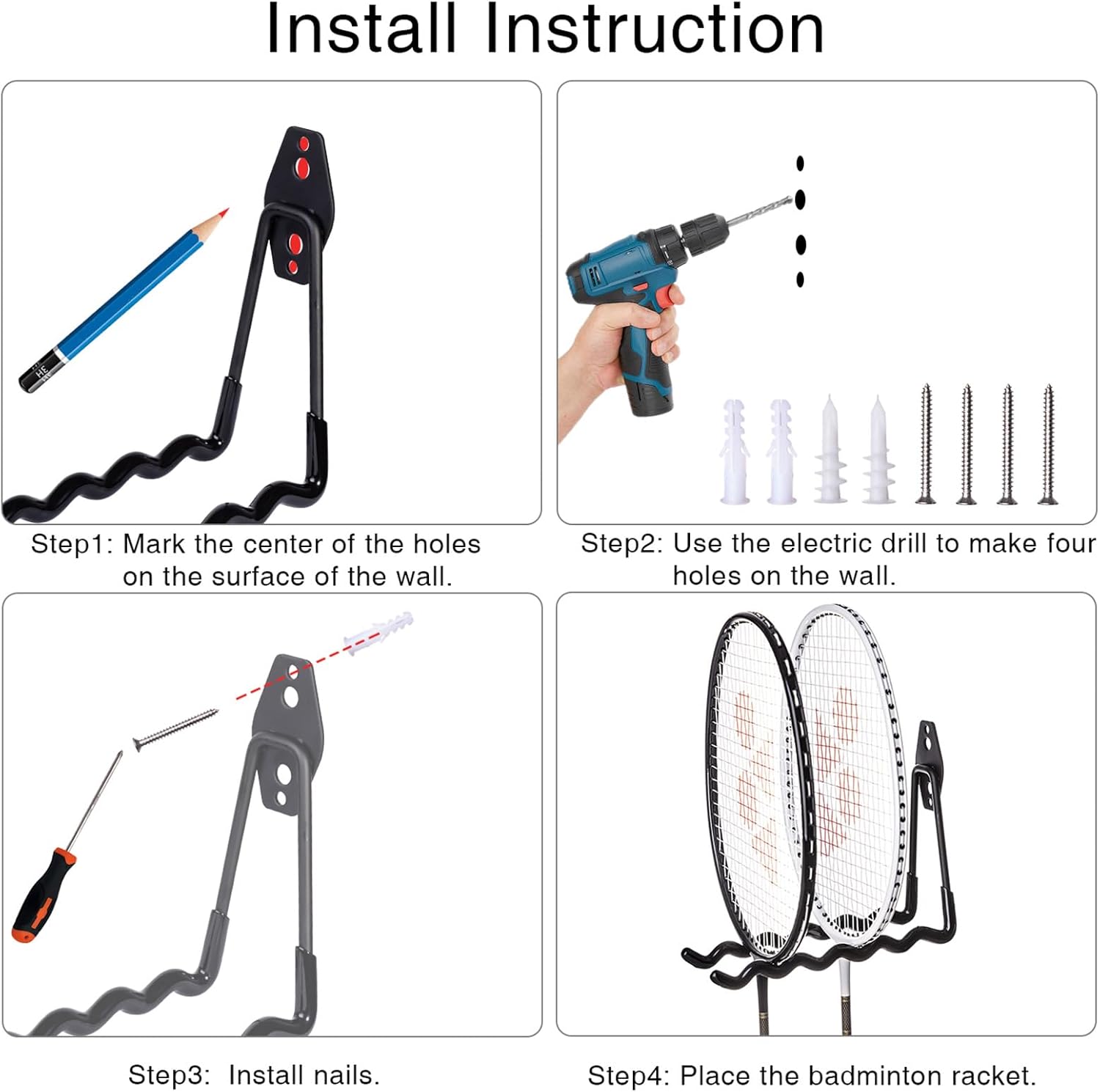 - ✅ Space-Saving Versatility: Ideal for garages, gardens, courts, sports clubs, and home gyms! Use as a badminton racket hanger, tool organizer, or equipment storage solution. Perfect for badminton rackets, scooters, hoses, folding ladders, and more.