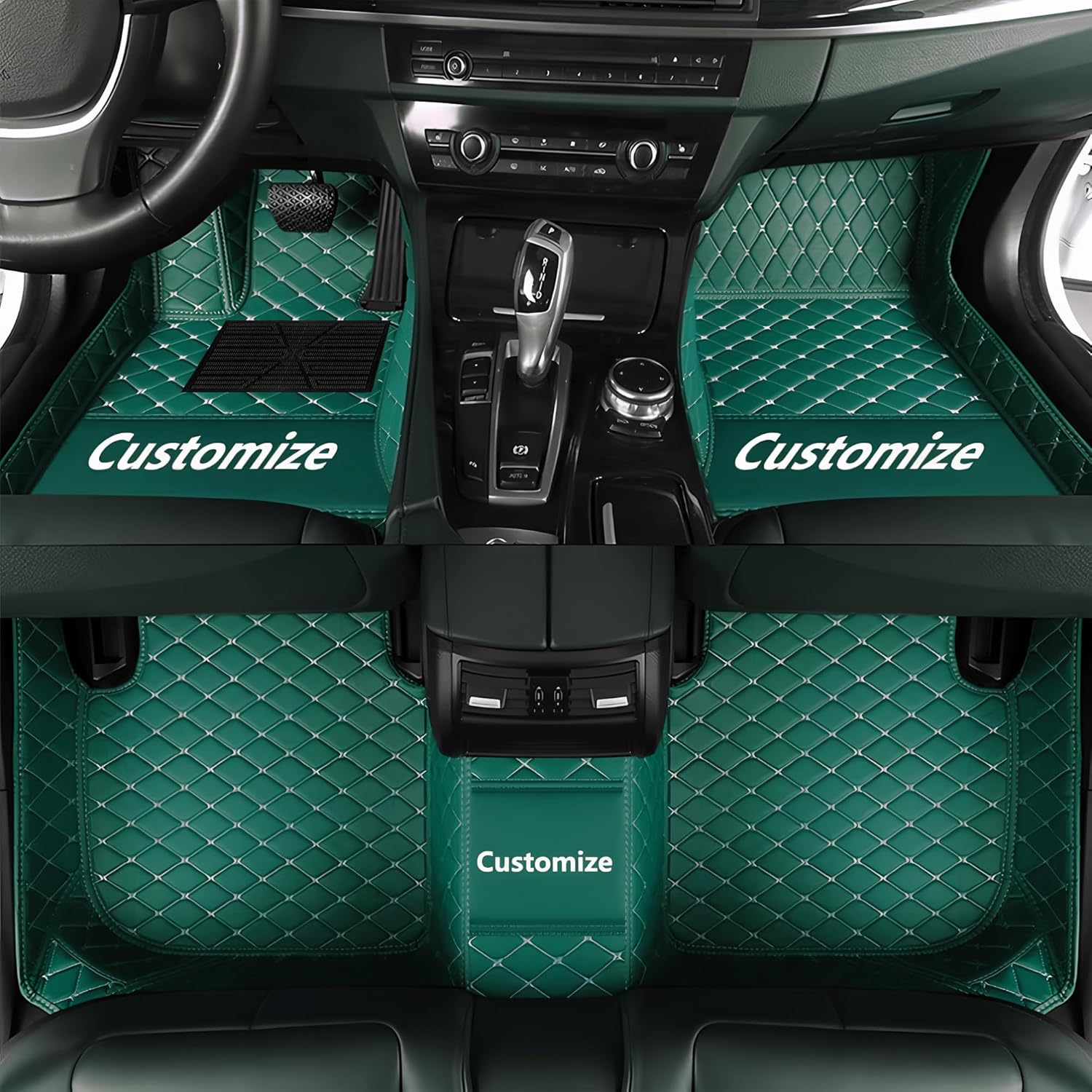 Custom Personalized Floor Mats for Cars,Luxury Full Coverage All Car Floor Mats,Anti-Slip Leather Car Mat Set ,Custom Floor Mats for 99% of Cars, Trucks & SUVs. (Green)