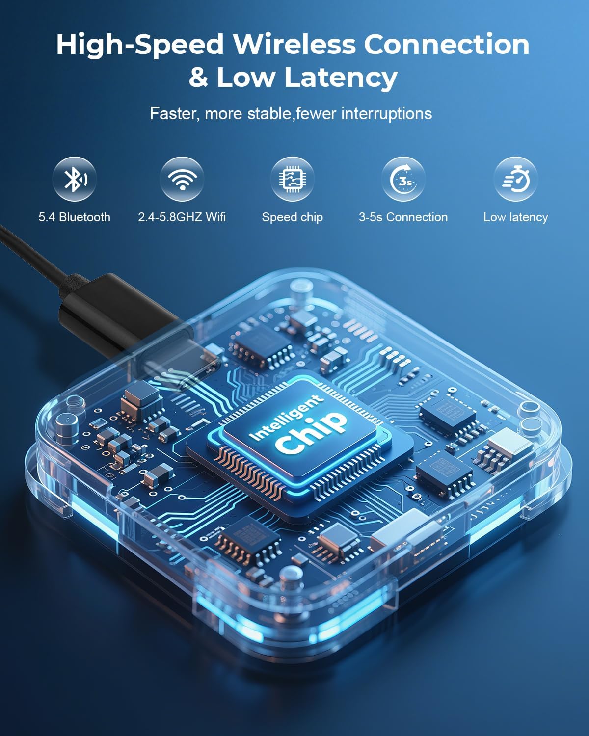 - ✅ 【LIGHTNING-FAST & LAG-FREE WIRELESS CONNECTION】Experience seamless wireless CarPlay adapter performance with 5.8GHz WiFi 6 & Bluetooth 5.3, delivering 3x faster speeds and millisecond response. Powered by an A7 Pro/A7S chip, it ensures 40% quicker data transfer than standard adapters, keeping navigation, calls, and music smooth.