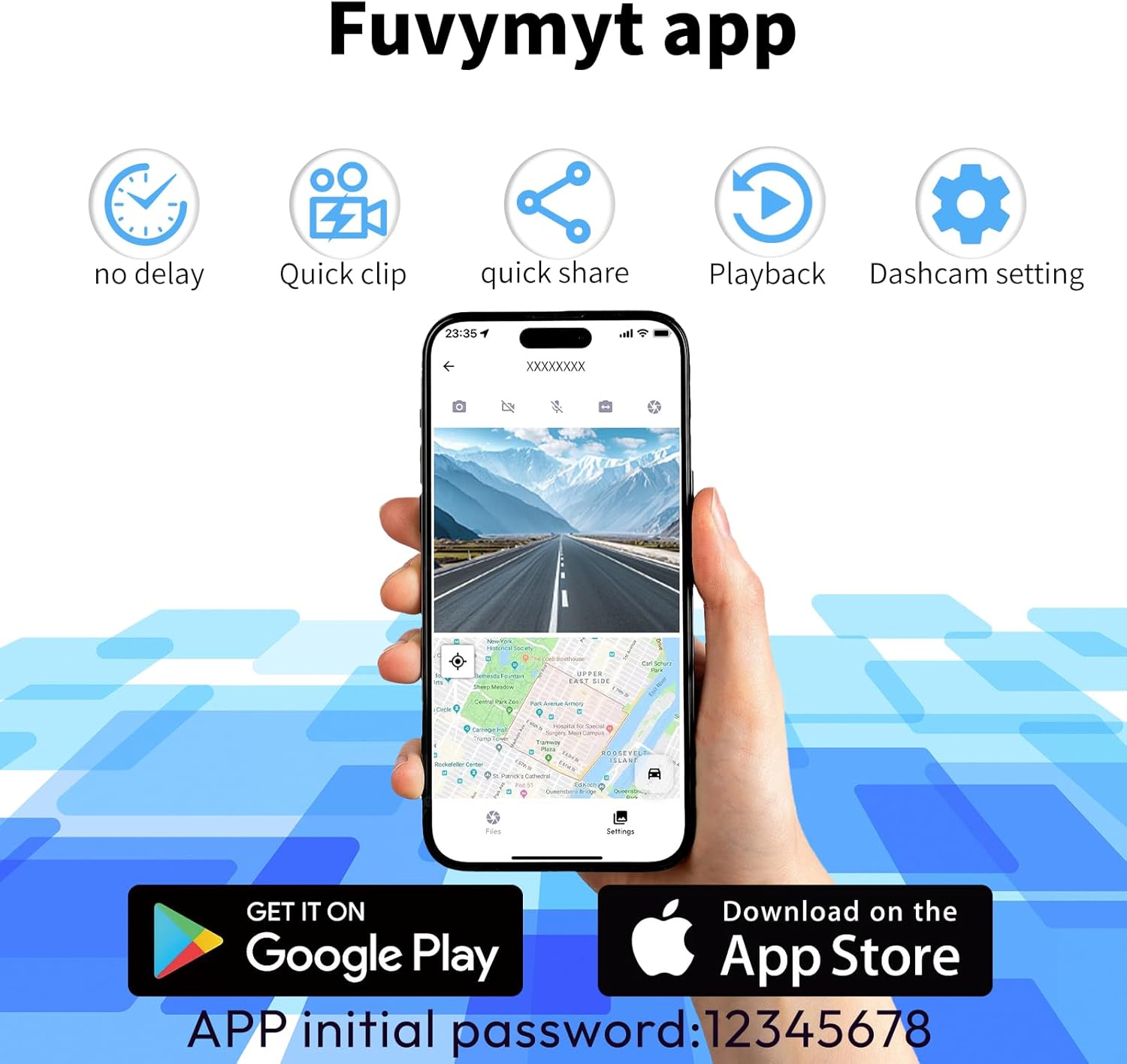 - [Easy Installation & Free app] The FUVYMYT dash cam has a simple installation that doesn't need to be rewired. With the fuvymyt app, which is designed for the FUVYMYT dash cam, you can get a faster connection speed and lower latency for living. Sharing and editing features make sharing beauty easy along the way. Tip: Turn off cellular data or Bluetooth if the preview is not working.Can't link carplay at the same time(WIFI password:12345678)