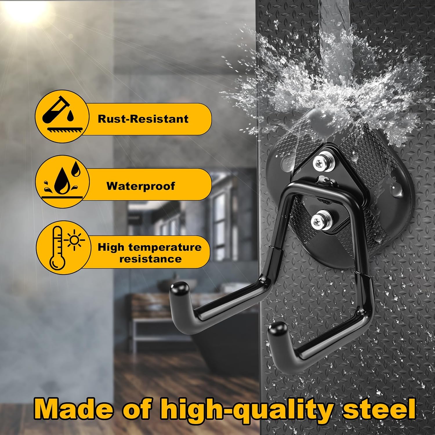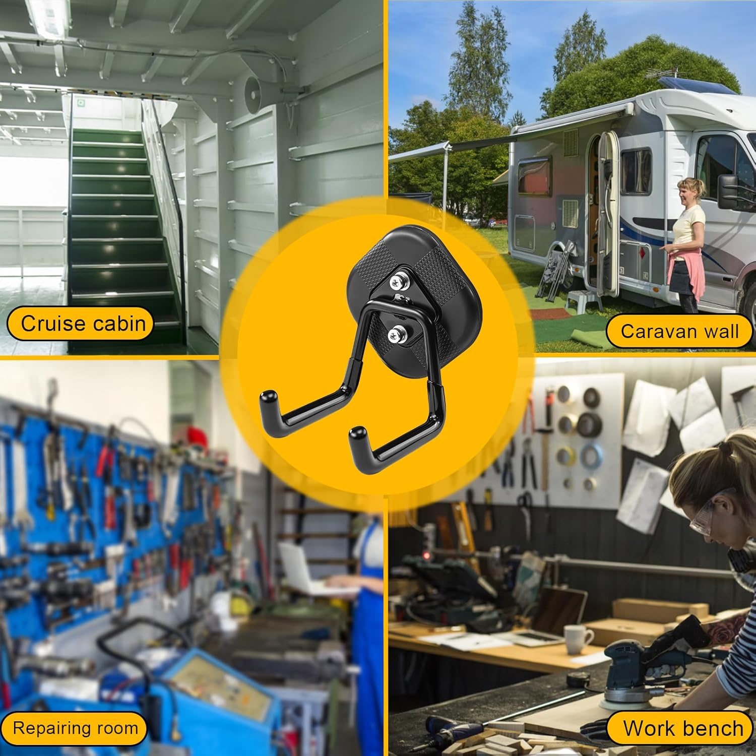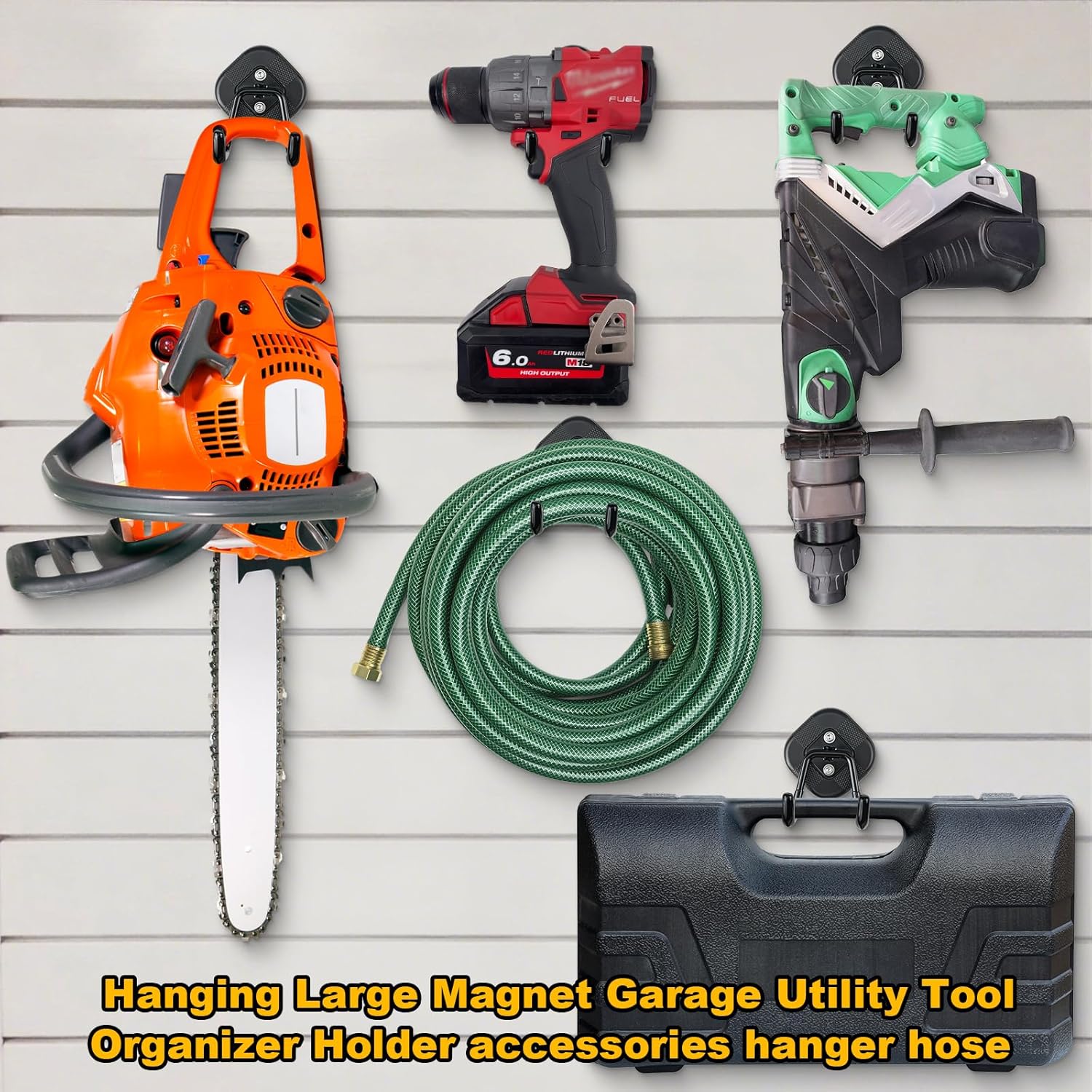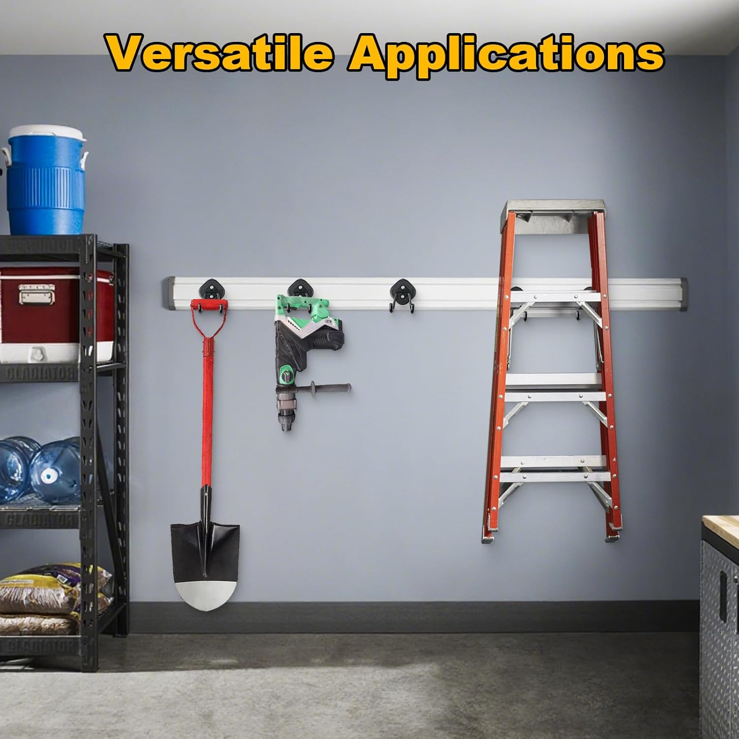 - Versatile Applications: Ideal for hanging a wide range of items including power drills,ladder,shovels,hoses,cords,ropes,coats,gym bags,and mops.Suitable for garages,vehicles,warehouses,workshops,offices,and outdoor activities like camping or DIY projects.