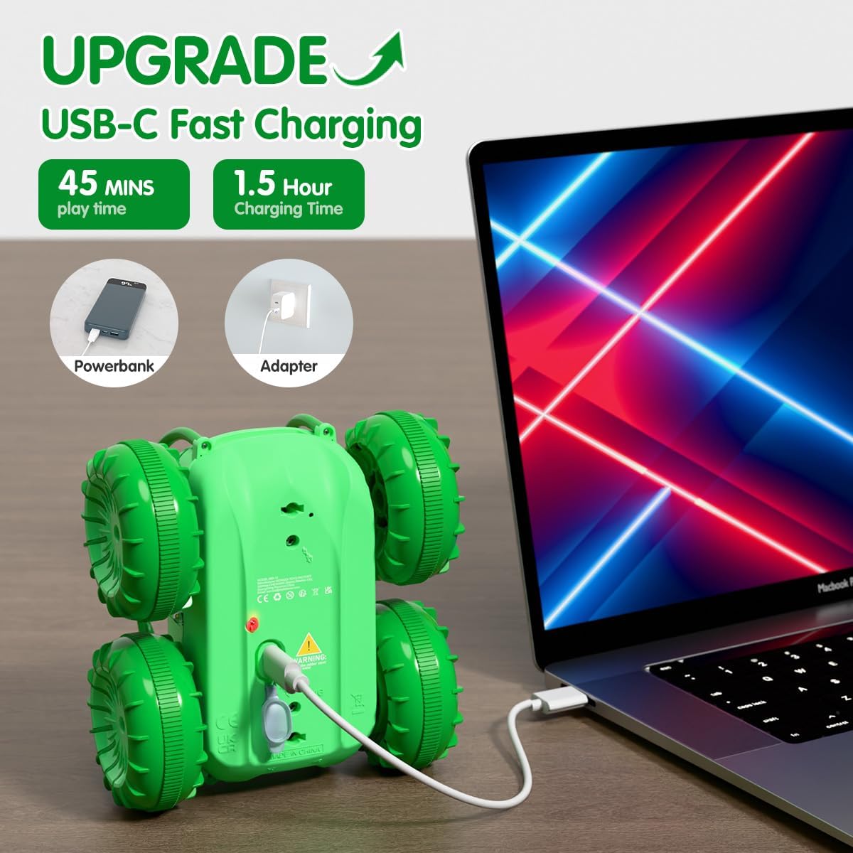 Remote Control Car, Fast Direct Charging RC Cars Amphibious Rechargeable Stunt Car 360° Rotating LED 2.4Ghz 4WD All Terrain Waterproof Cars Toy Christmas Birthday Gift Kids Boys 3-12 Years