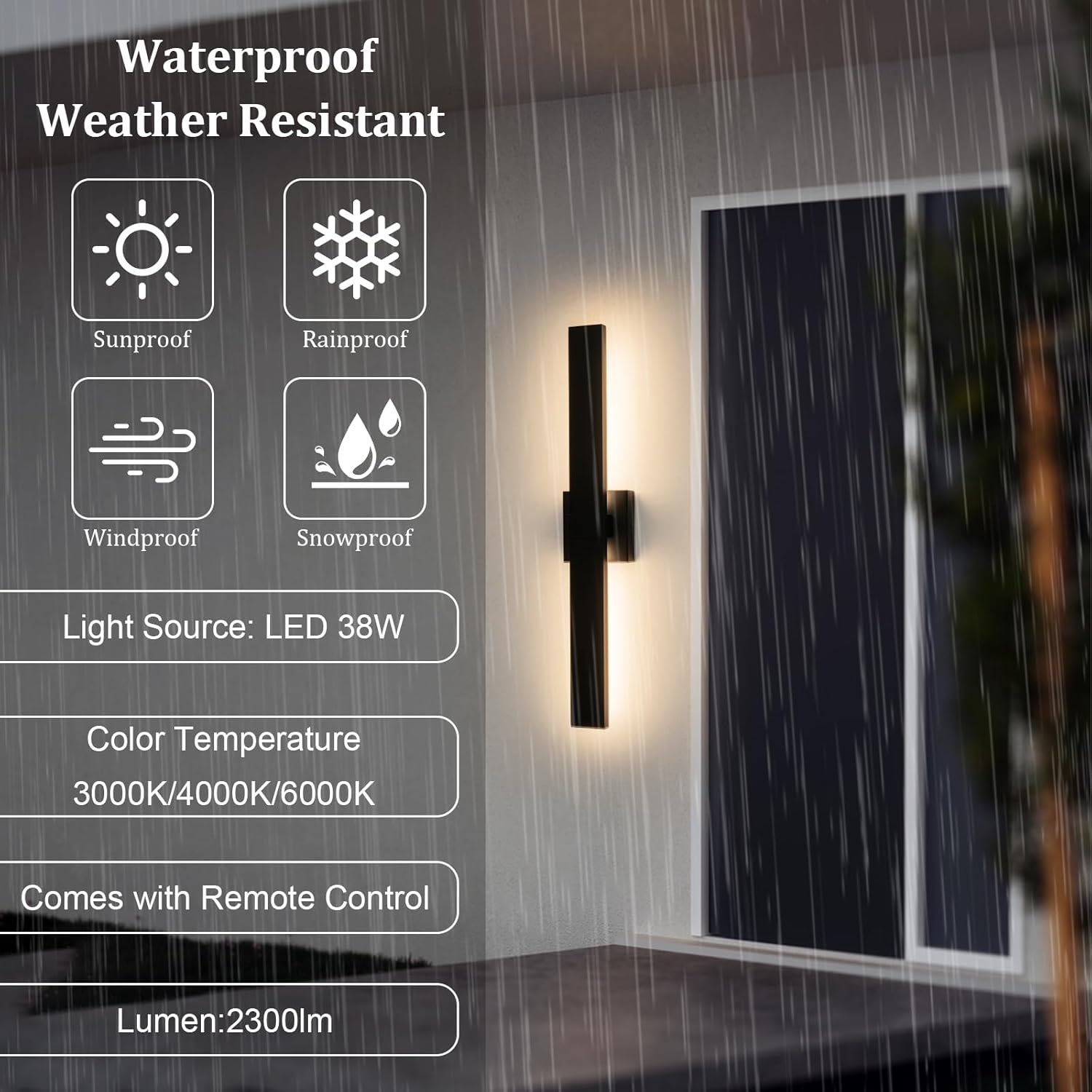 Modern Outdoor Wall Light 3CCT Dimmable LED Outdoor Sconce Lights with Remote Control(3000K 4000K 6000K), 27.2" Black Outside Light Fixtures for House Front Door Garage Porch & Patio