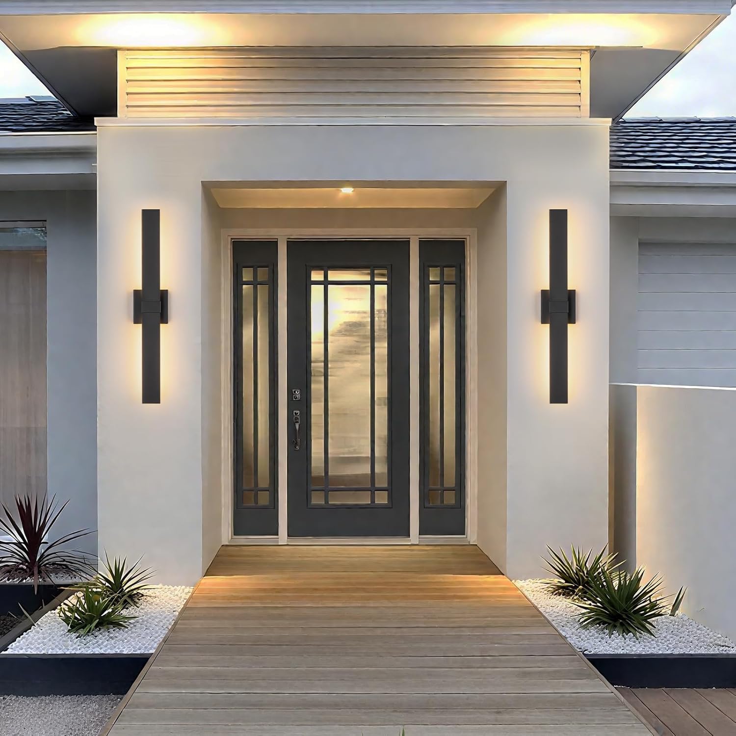 - Sleek Modern Linear Design – Outdoor wall sconce features sleek one-line bar shape with a clean matte finish and minimalist profile, blending seamlessly into modern, contemporary, and minimalist. Perfect for outdoor places like porches, patios, yards, garages, etc., or indoor places like bedrooms, living rooms, etc.