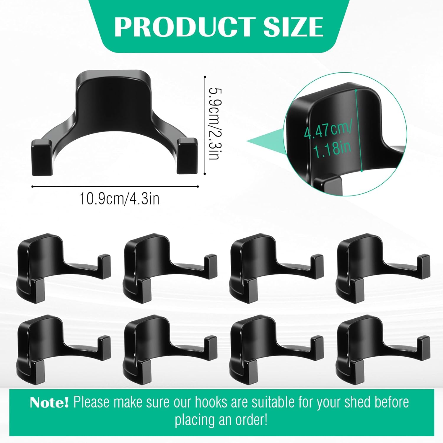 - Product Dimensions: the U shaped hook measures approximately 4.3 x 3 x 1.77 inches/ 10.92 x 7.62 x 4.5 cm; Please check the dimensions carefully before purchasing; Attention! Please confirm that our hooks are compatible with your shed before purchasing