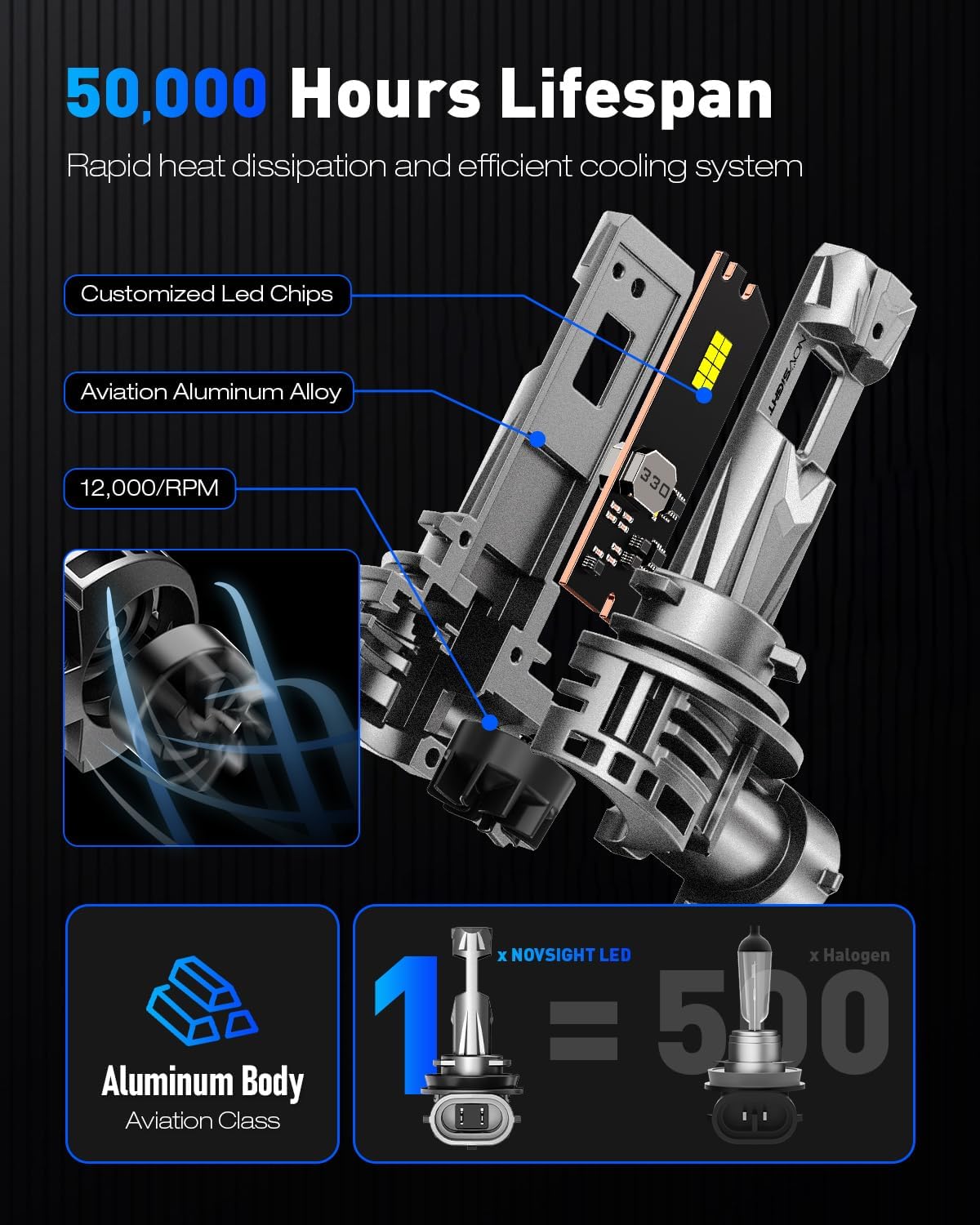 - 【Efficient Heat Dissipation】 Advanced cooling keeps temps lower than halogen, extending bulb life to 50,000 hours. Reduce replacements, save costs, and ensure long - term reliable lighting