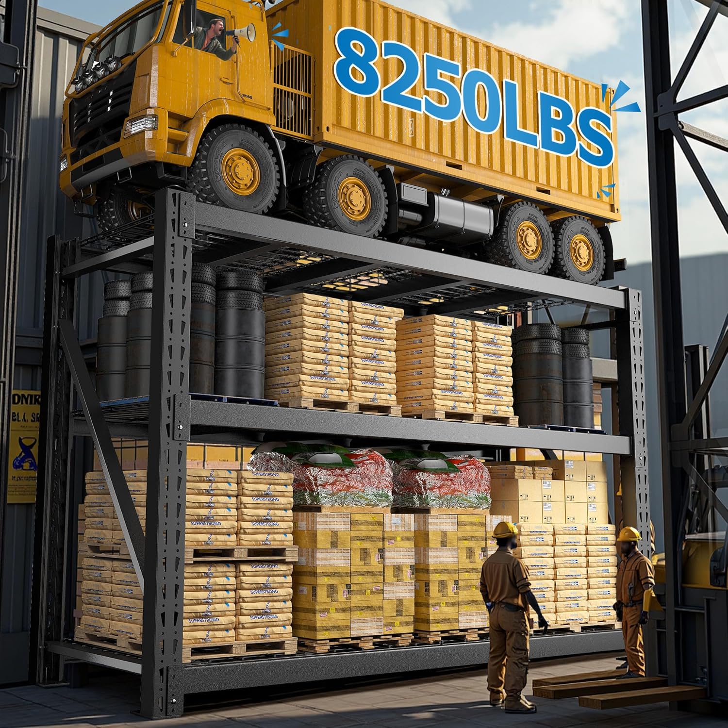 - Industrial-Strength Garage Shelving: 2,750 lbs/shelf (8,250 lbs total) capacity. Reinforced steel beams & seamless columns support machinery/auto parts. Storage shelving joint-free design ensures stability under heavy loads—equivalent to 2+ vehicles. Professional-grade durability.