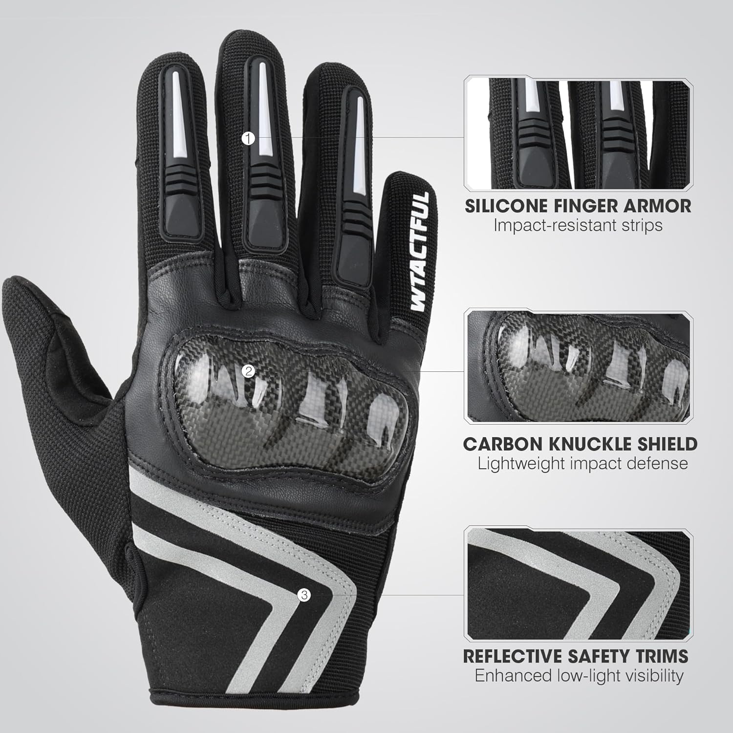 WTACTFUL Lightweight Motorcycle Gloves for Men, Touchscreen Summer Breathable Gloves for Motocross Casual Riding