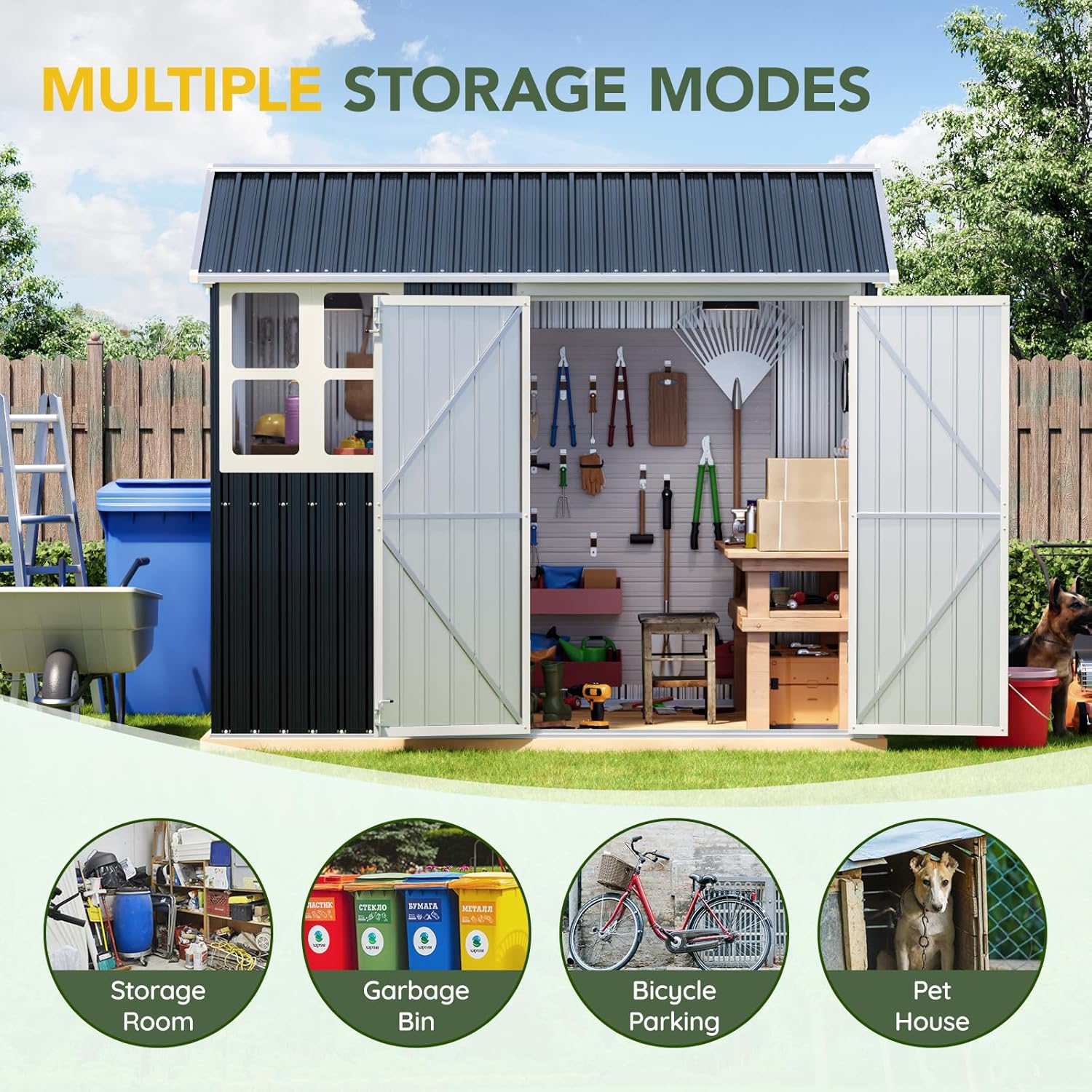 - Durable Construction: Crafted from galvanized steel, this shed is rust-resistant and weatherproof, ensuring long-lasting durability even in tough outdoor conditions.