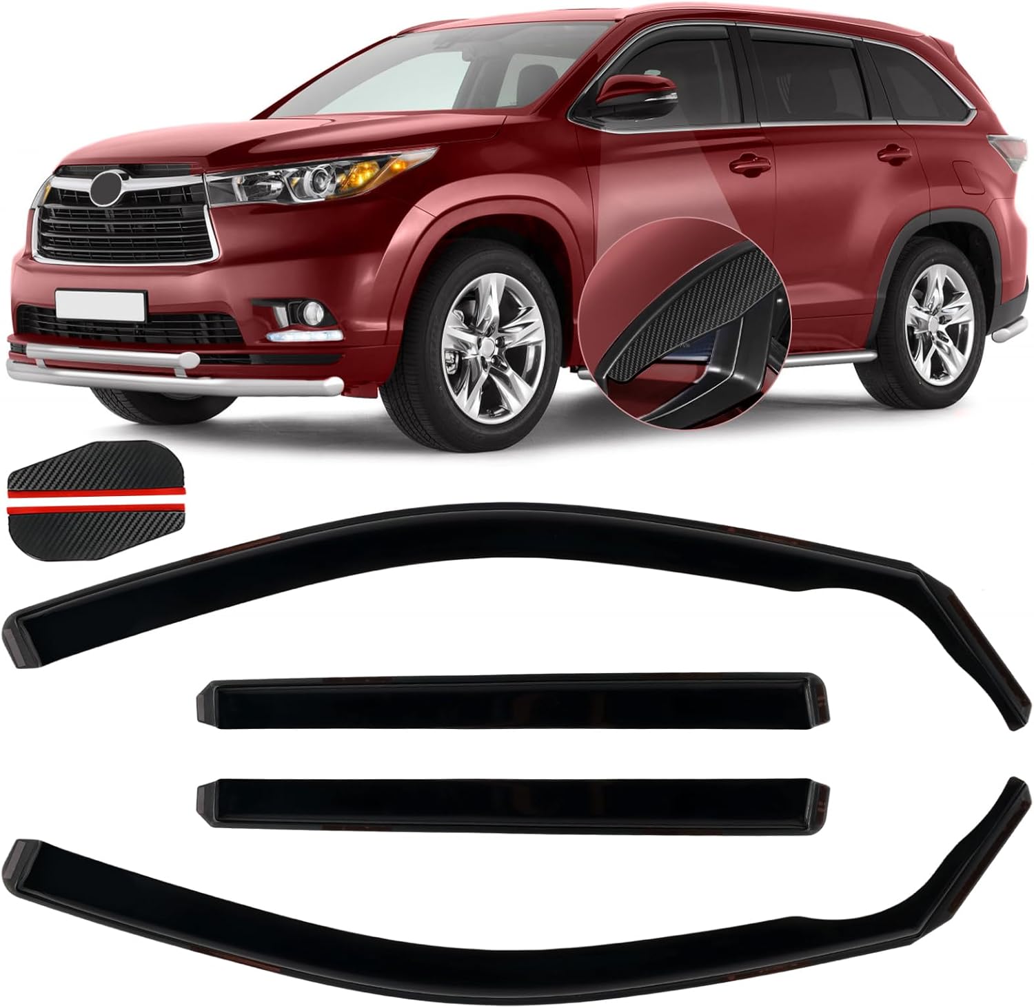 in Channel Window Visors Rain Guards Fit for Toyota Highlander 2014 2015 2016 2017 2018 2019, Durable Wind Deflectors Vent Shades Shield for 14-19 Highlander-4PCS