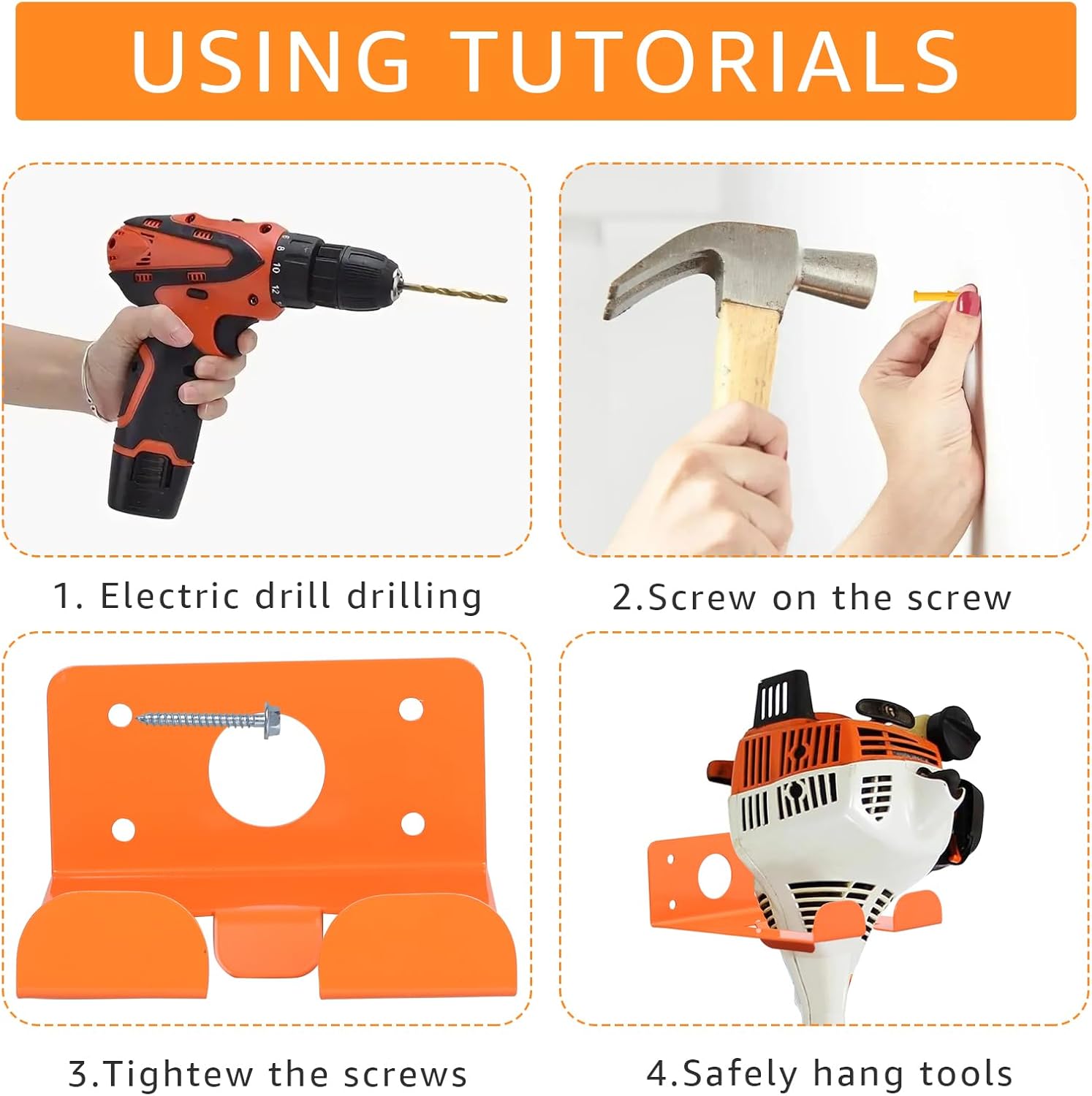 - Universal garage wall solution: perfect wall mount for STIHL trimmers, leaf blowers, drills and more. For all walls: drywall, concrete, brick, wood. Includes 2 racks + 6 screws/tubes/spacers for rock-solid installations, the best choice for storing and keeping tools in the garden, garage, tool room, etc