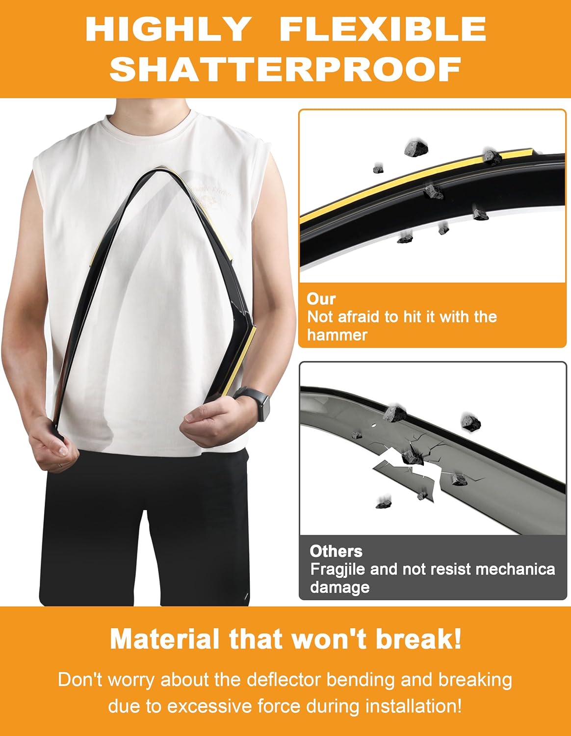 - 【Extra-Durable Polycarbonate】Deejecsun Window Deflectors made of long-lasting shatterproof material, offer ultimate protection against heat, wind, rain, and environmental damage, ensuring a safe and comfortable journey .