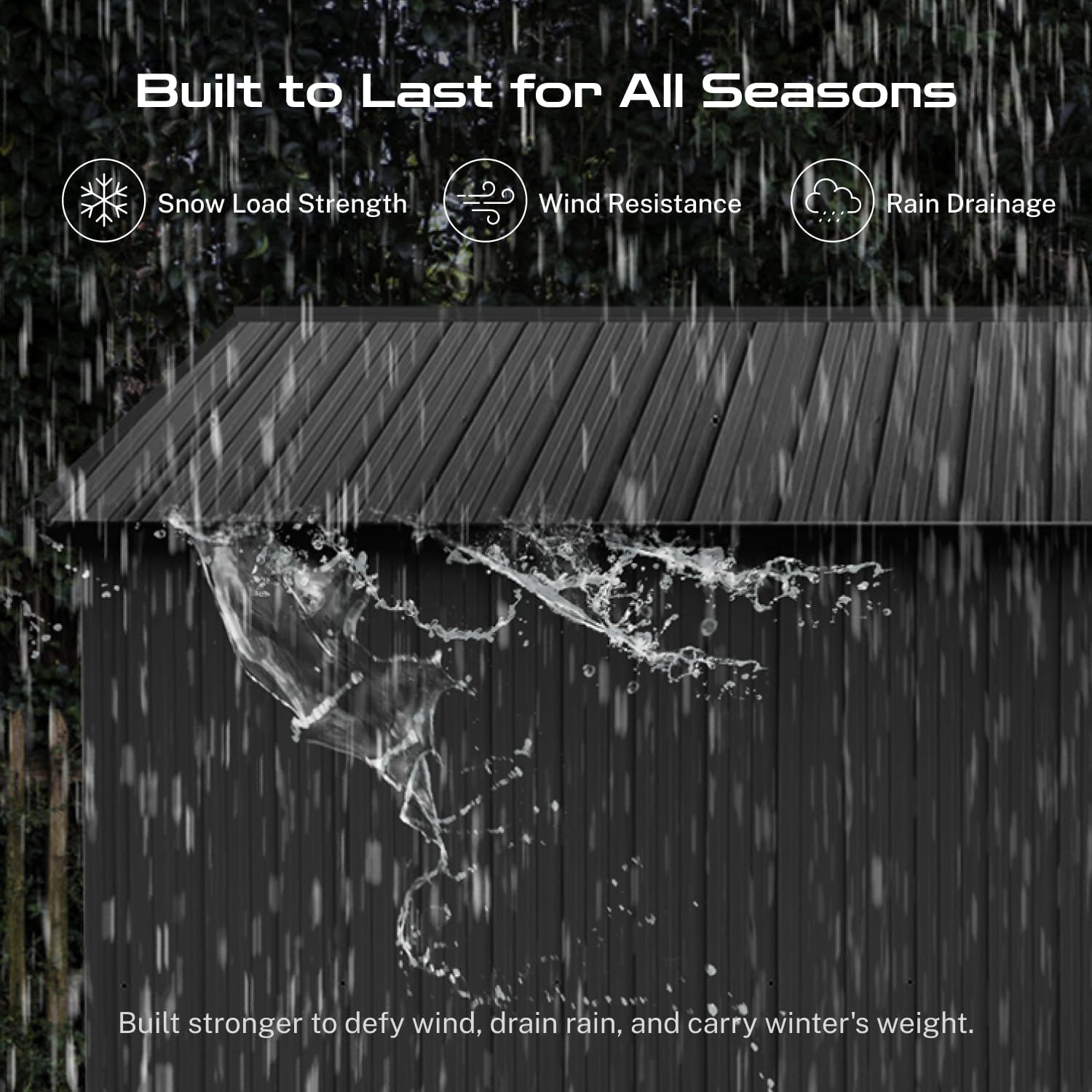 - β [Sloped Roof for Superior Weather Protection] Designed for real-world conditions, the efficient sloped roof system guarantees optimal rainwater drainage, preventing damaging pooling and leaks. This key feature in our storage buildings and sheds clearance design minimizes maintenance and ensures your tools, equipment, and belongings stay consistently dry inside