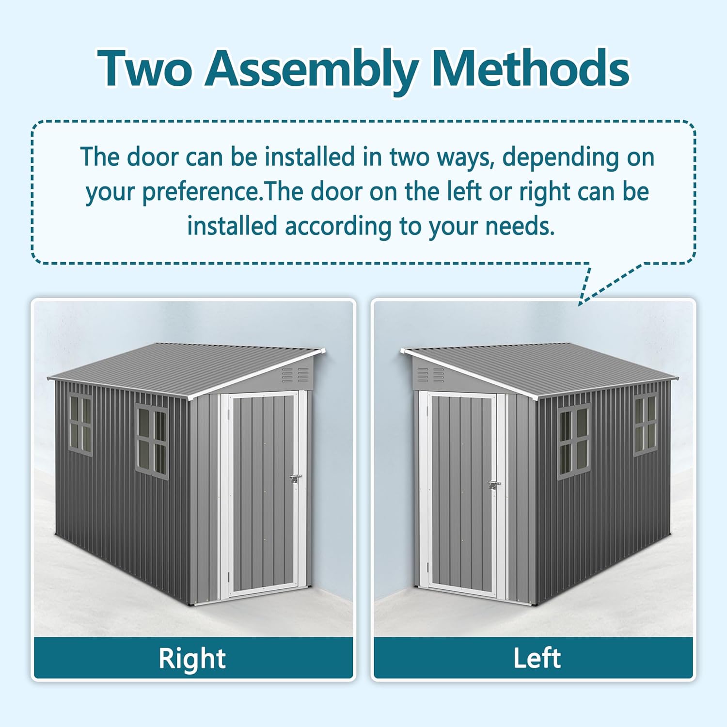 4x10 Ft Outdoor Metal Shed, Heavy-Duty Storage Shed with Floor Kit for Tools and Bikes, Lean to Shed with Left/Right Door and 2 Windows