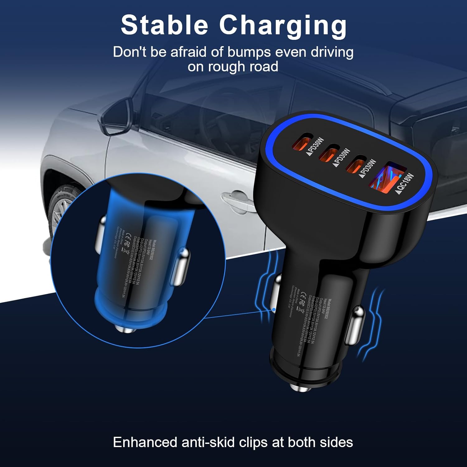 - 【4-Port Fast Car Charger】USB C Car Charger provide dual PD 30W ports and USB A + USB C ports 30W(Max) output, this car phone charger allows you to charge up to 4 devices simultaneously, One multiport car cigarette lighter adapter for all your Phones & Tablets & USB Devices, Enhance charging efficiency, make it the best companion for family trip