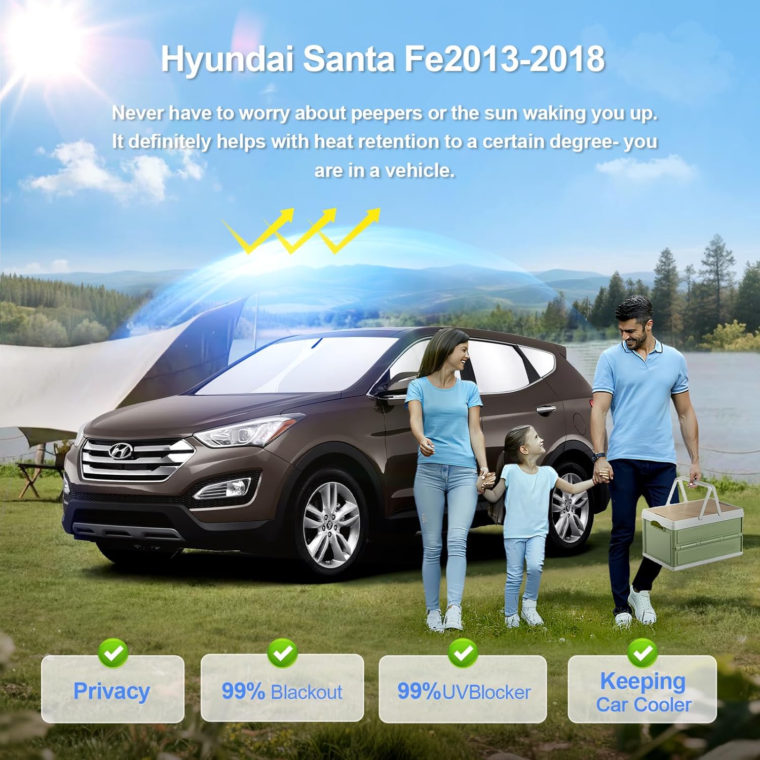 - Designed specifically:SHINELINERS full window sunshade is specially designed for Hyundai Santa Fe 2013 2014 2015 2016 2017 2018.Provide your car with comprehensive UV and infrared protection, not only keeping the interior cool in hot weather but also extending the lifespan of the car's interior