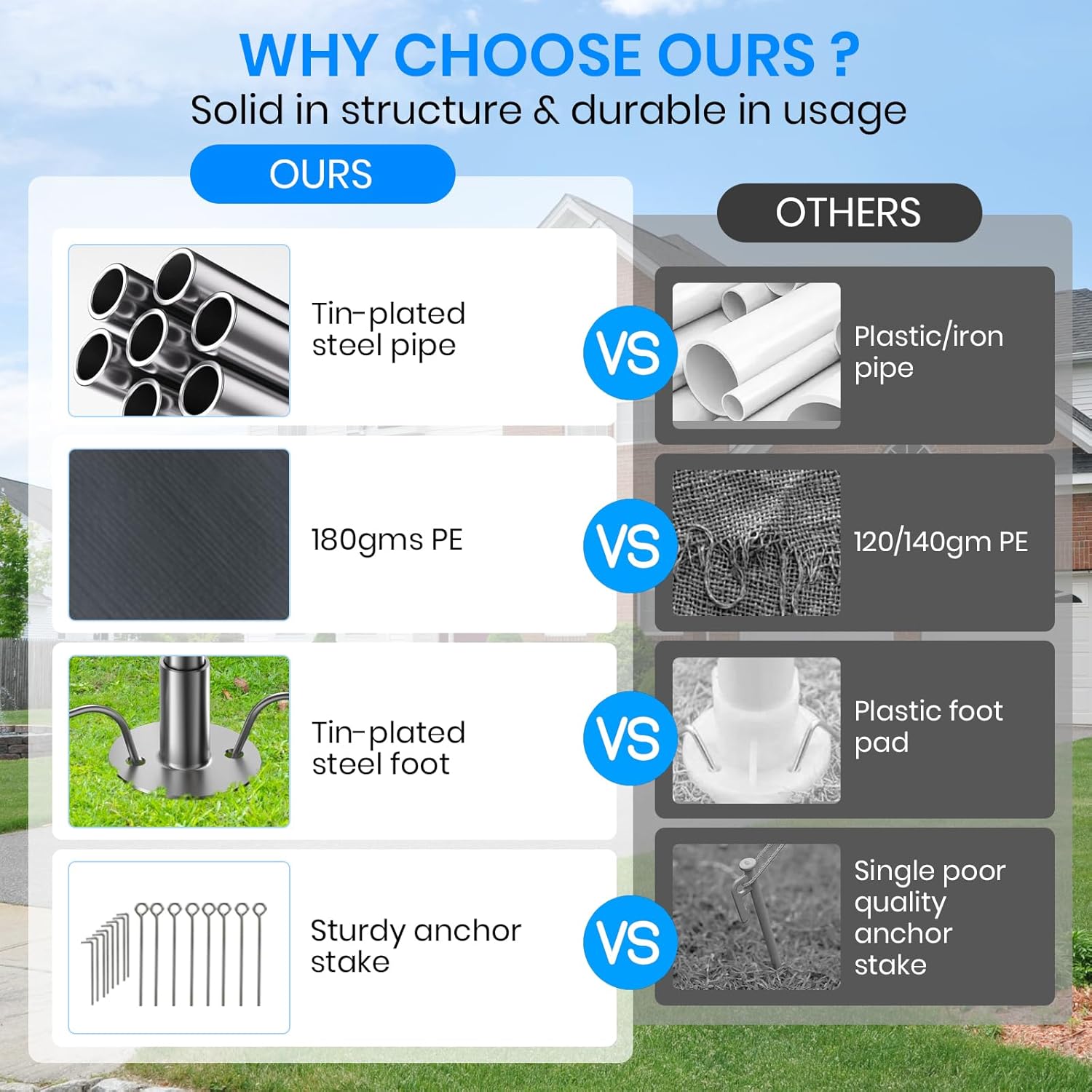 - Multi-Purpose Protection:Not just for vehicles, this 10x20 FT carport is ideal for storing boats, RVs, motorcycles, and even as a shelter for outdoor events like parties, picnics, or gatherings. Its versatile design ensures it can adapt to various needs, providing reliable shelter wherever you need it.