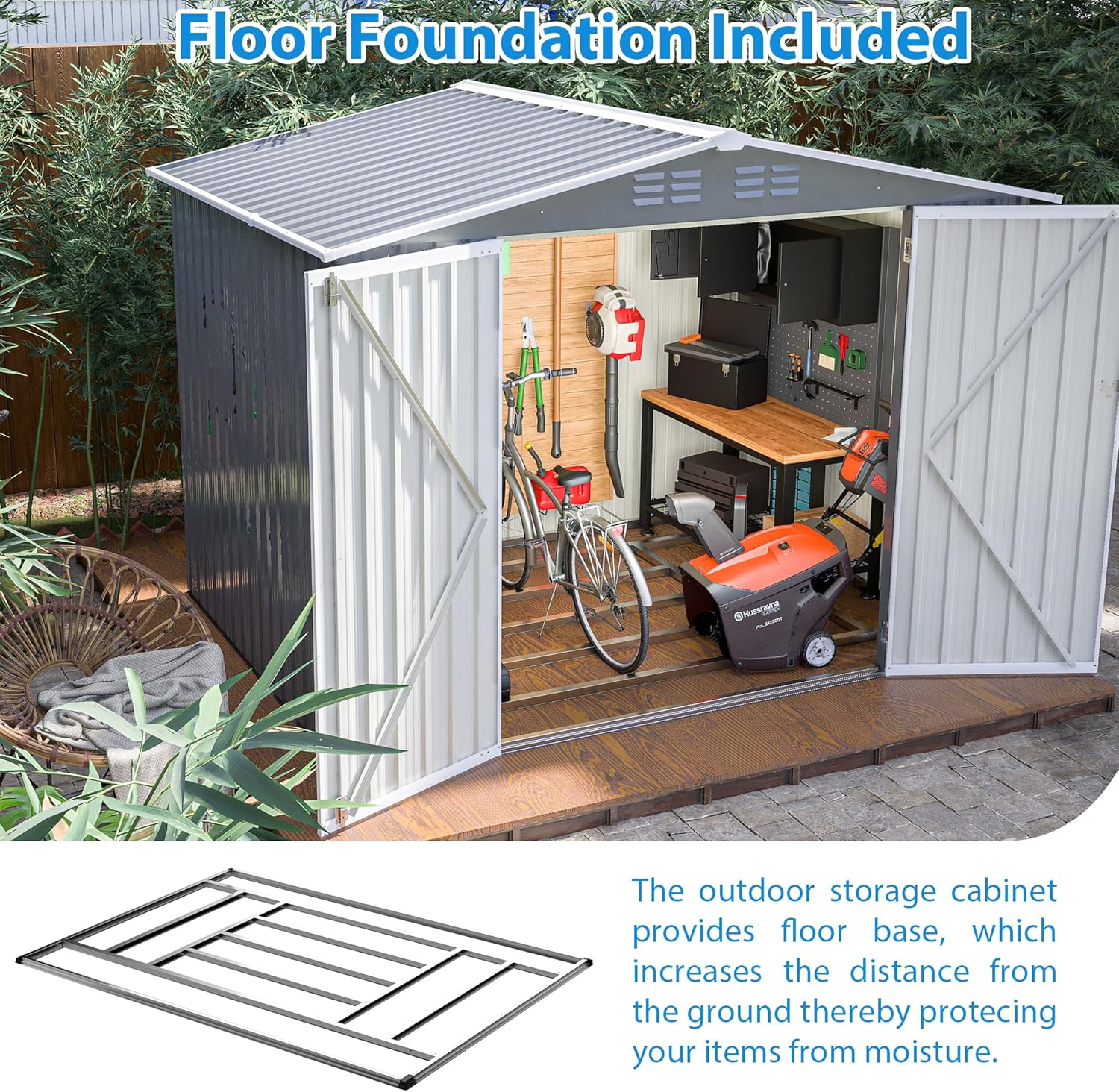 Outdoor Storage Shed,8X6 FT Metal Garden Shed with Lockable Doors & Slooping Roof,Updated Reinforced Door,Tool/Bike Sheds for Backyard, Patio, Poolside,Garage