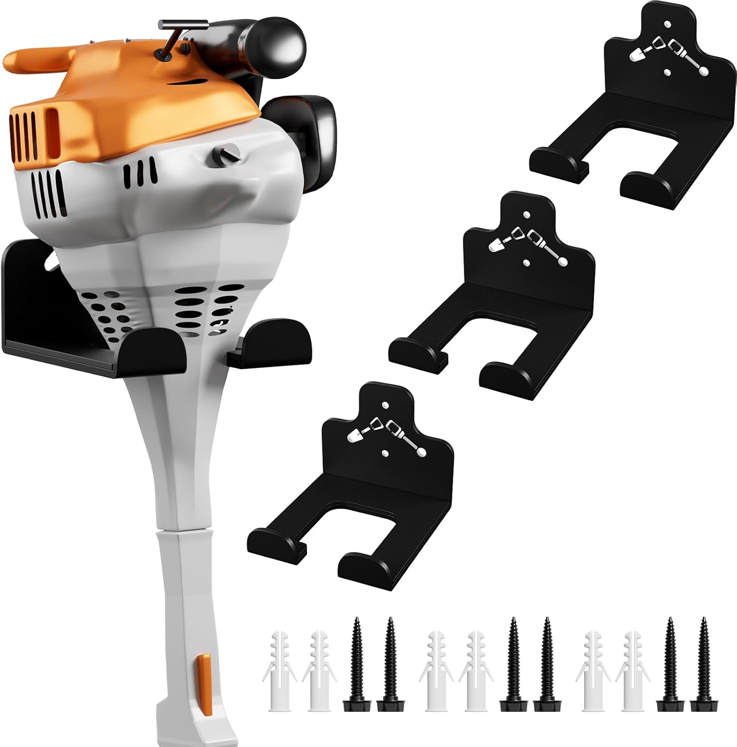 - Tool Hangers for Garage: The hanger for weed trimmer provide effective storage space for your garage, garden, basement or warehouse, it can be installed anywhere on the wall, you are free to place your own special tools where you like
