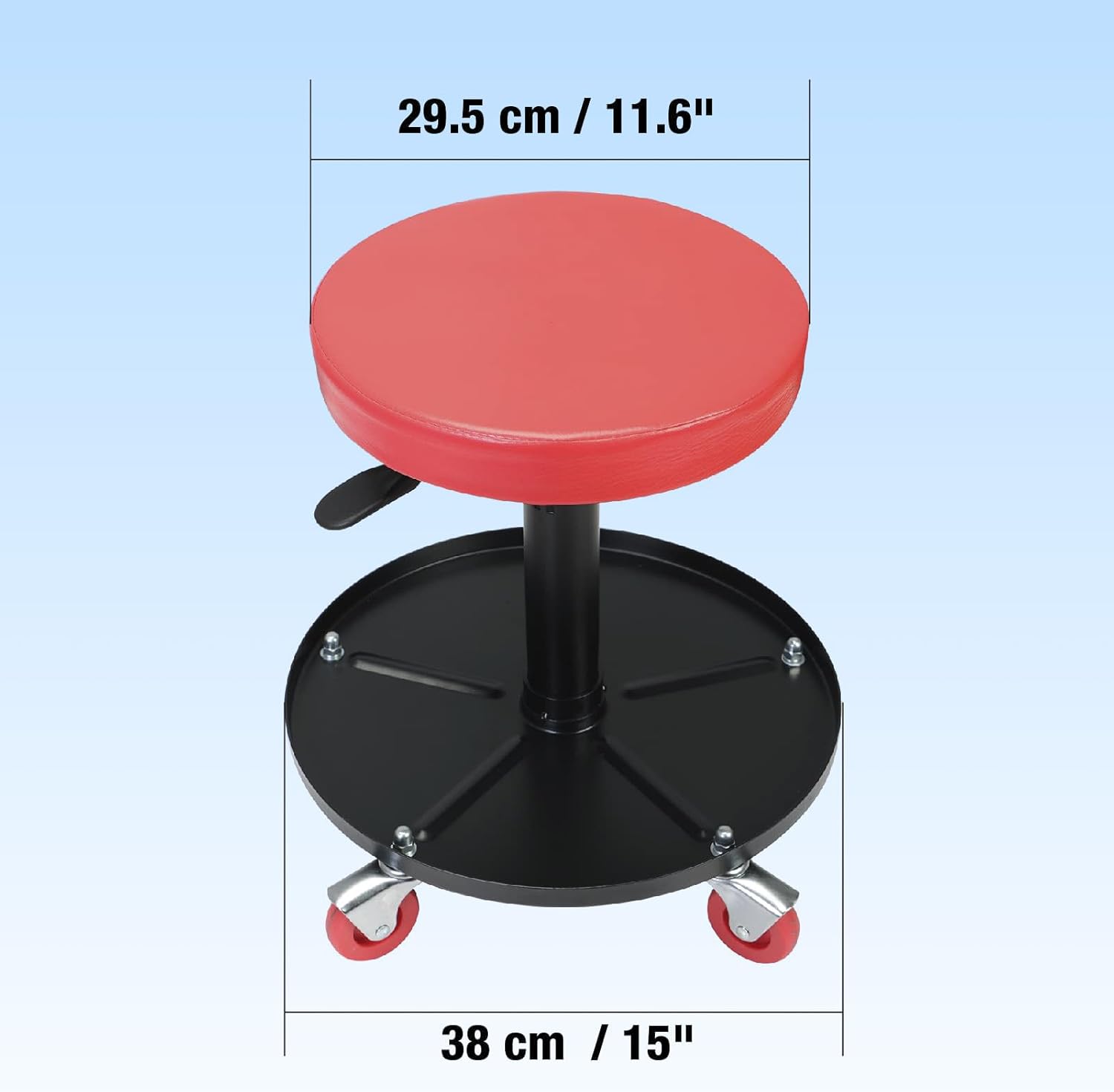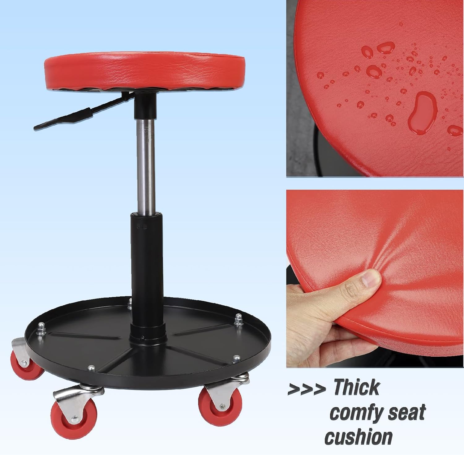 Big RED Creeper Garage/Shop Seat: Heavy Duty Rolling Pneumatic Padded Adjustable Mechanic Stool with Tool Tray Storage, Red Large