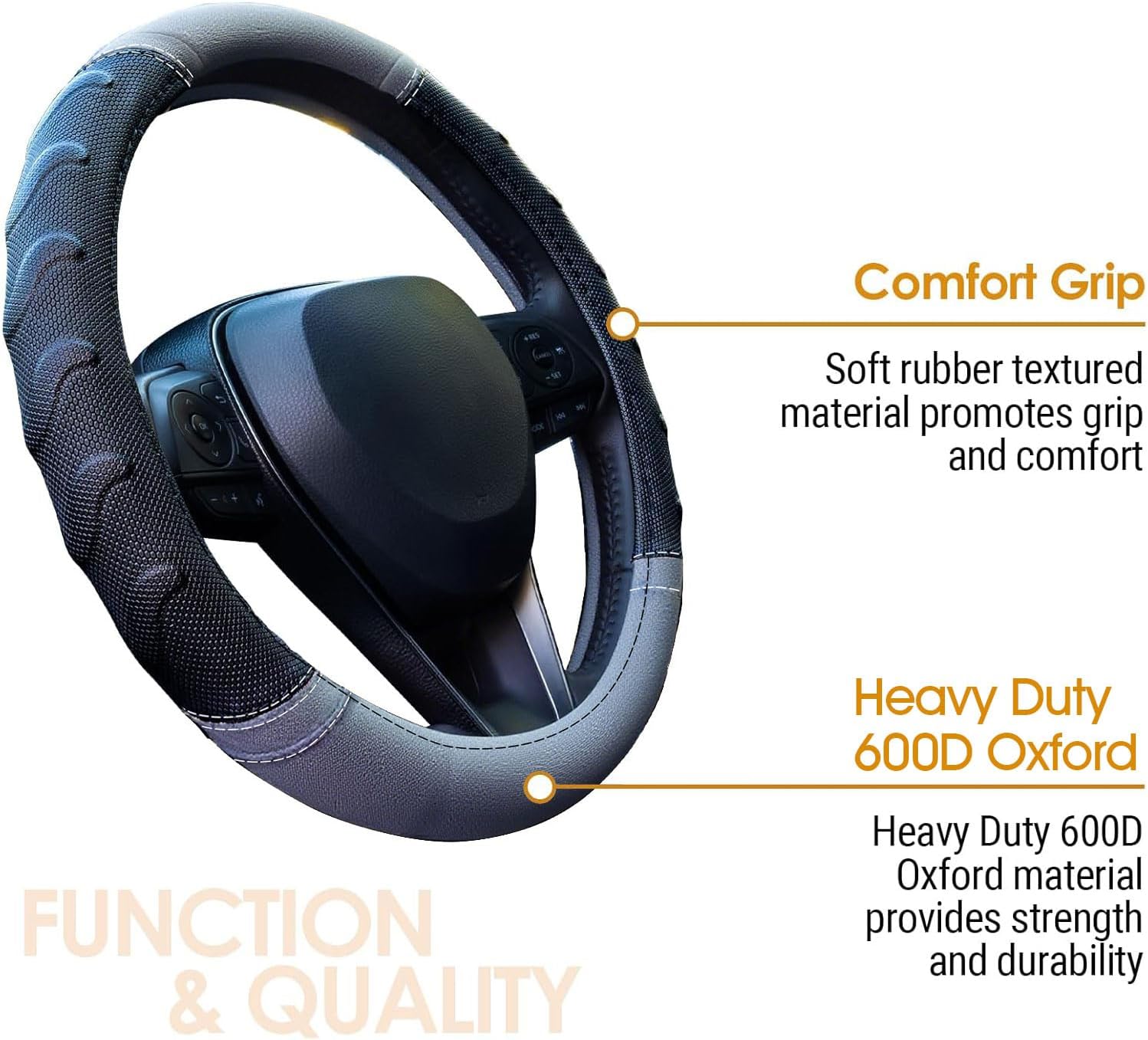 Grey Truck Steering Wheel Cover with Breathable Grip, Premium Faux Leather, Universal fit for Full Size Trucks and SUVs with Steering Wheel Size 15.5" to 16"