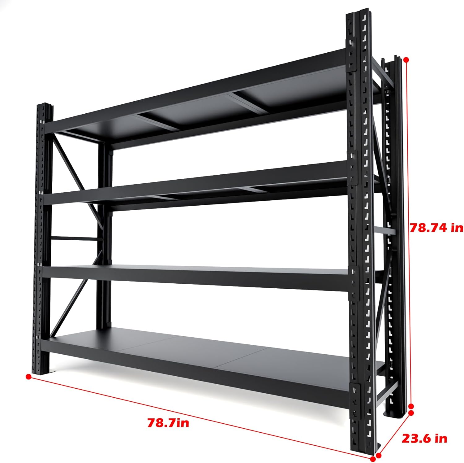 Garage Shelving Heavy Duty - 6.5ft W Extra Large Metal Shelving Units and Storage for 4000lbs, 4tier Adjustable Basement Storage Industrial Shelves Pallet Racking Organizer (23.6"D *78.7"W * 78.7"H)