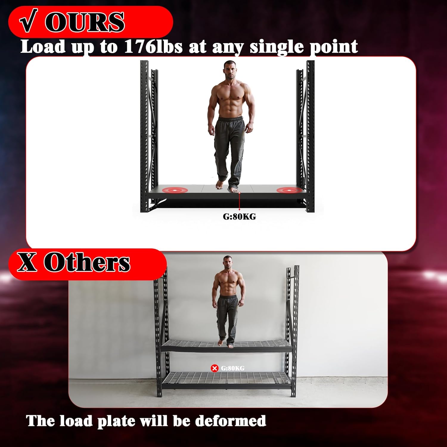 - Heavy Duty - each layer of load-bearing 1600lbs, the entire shelf total loads 6500 lbs, you can really organize a variety of super-heavy items, as 20 years of storage rack manufacturer, load-bearing capacity of real and reliable