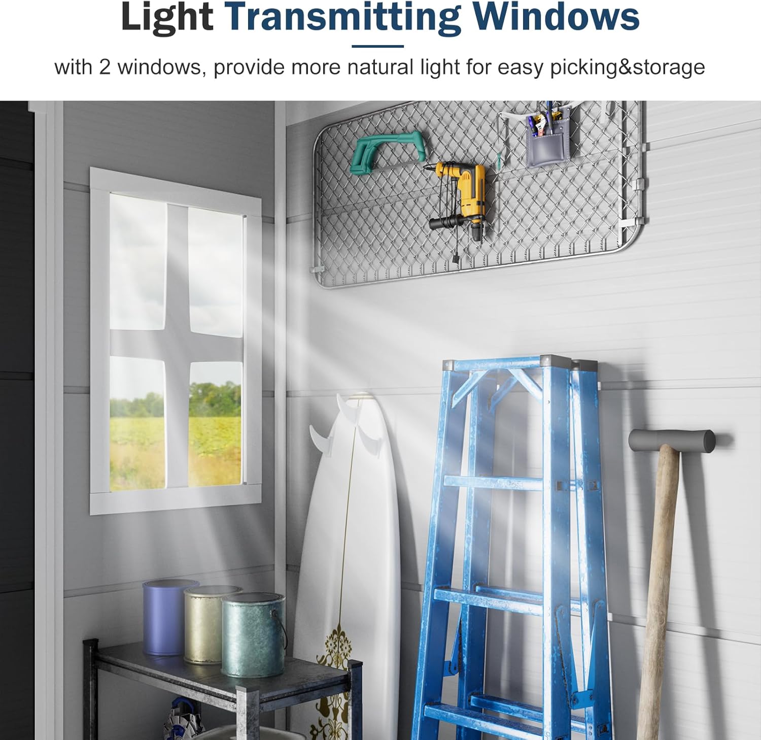 - DURABLE RESIN STORAGE SHED:It looks like a classic wood shed, but it doesn’t need to be repainted or repaired since it will never rot, rust, or peel–unlike wood.The shed is also easy to modify. So, if you want to paint the walls or drill holes, you can make the inside of the shed work to fit your needs exactly
