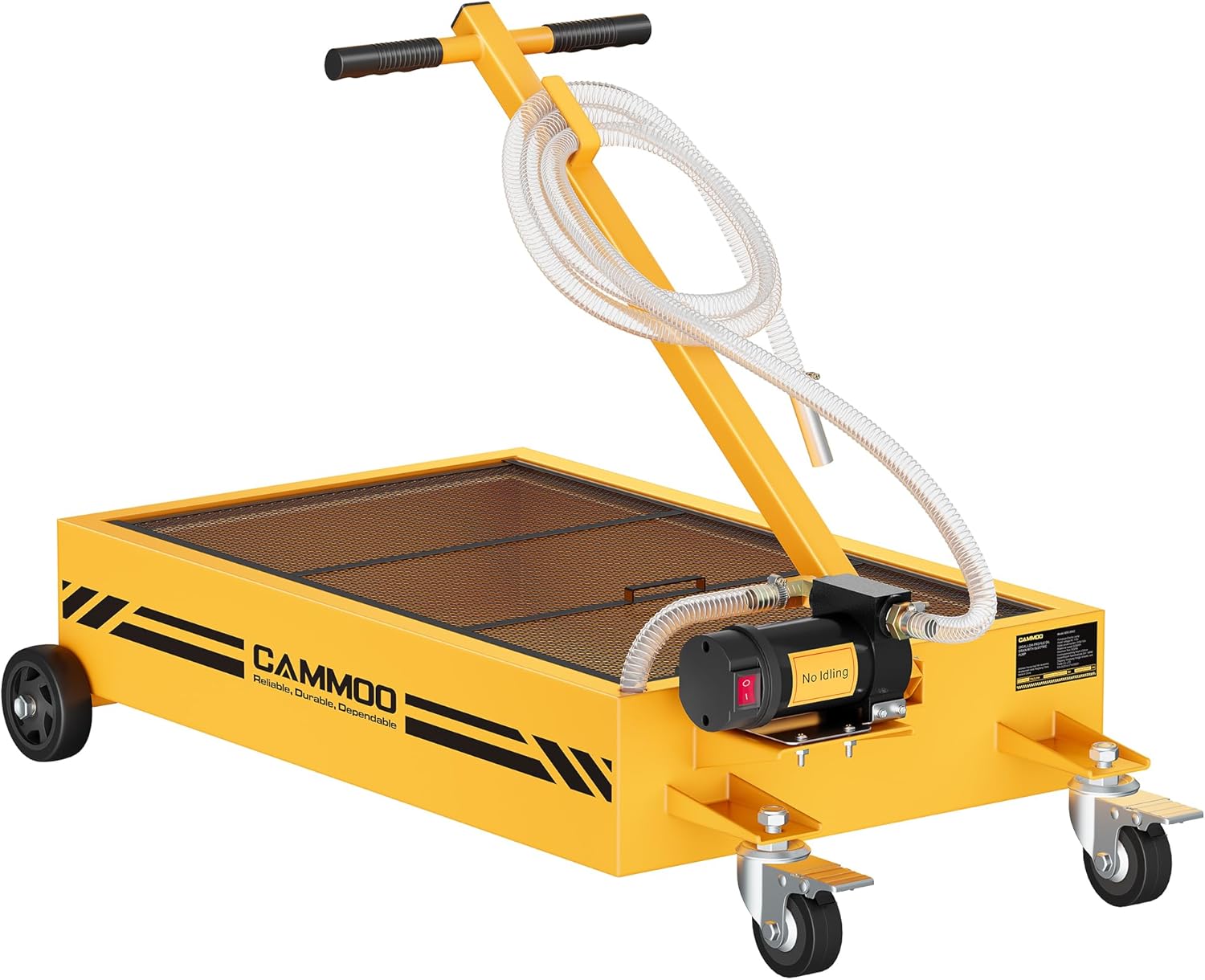15 Gal Electric Oil Drain Pan, 110V High-Flow Pump, 9.8 FT Hose, 200 W Motor, 2 Locking Swivel Casters and 2 Directional Wheels Stable, Folding Handle, Heavy-Duty for Trucks, RVs, SUVs, Yellow