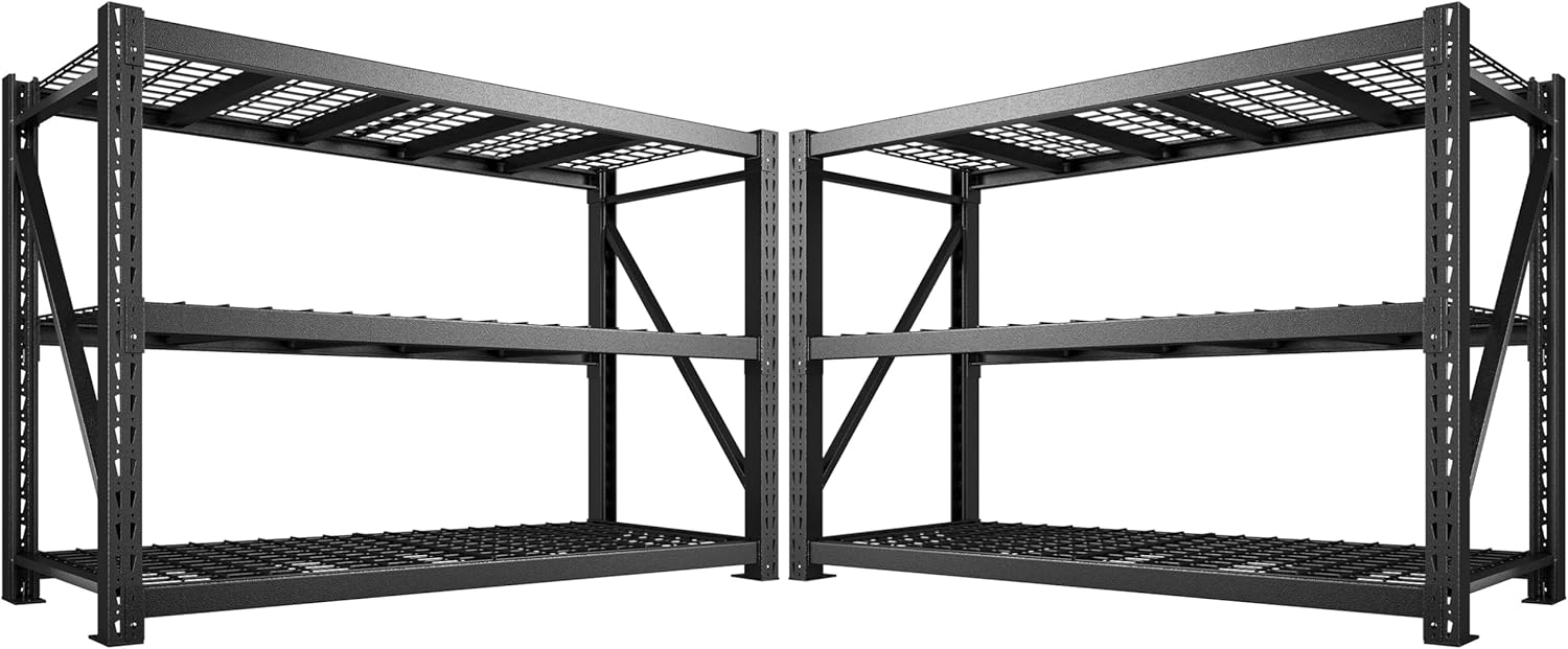 Bepatio 77" W Garage Shelving Heavy Duty, Ultra Wide Storage Shelves 3 Tier Metal Shelving Unit Adjustable Utility Shelves for Garage, Basement, Warehouse, Black 77" W*23.7" D*66”H, 2 PCS