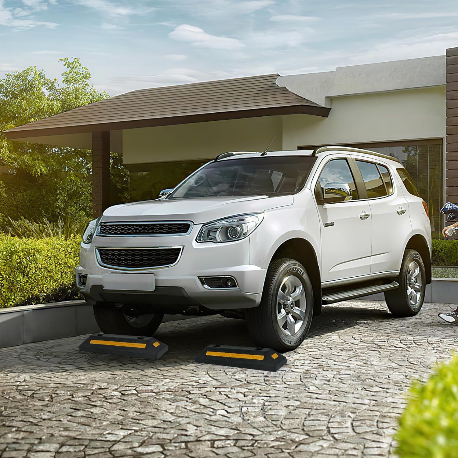 - Reliable Parking Curb: Effortlessly solve parking challenges with our heavy duty parking stopper. Designed to minimize collisions, scratches, and dents, the garage tire stops ensure safe vehicle protection.