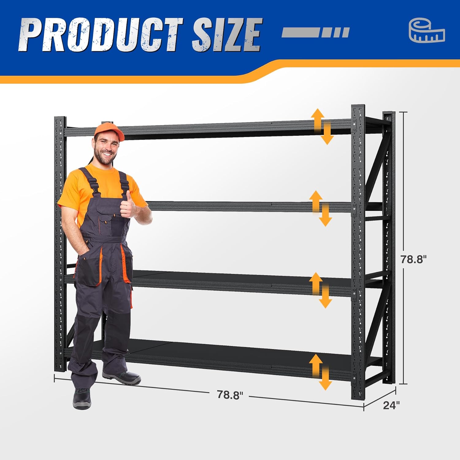 - Extra large product size: The heavy-duty shelving are 78.8"W X 24"D X 78.8"H and have been widened and upgraded horizontally. They have an extra-large width of 78.8 inches, which can store more items and are suitable for more usage scenarios, such as garages, factories and warehouses, etc.