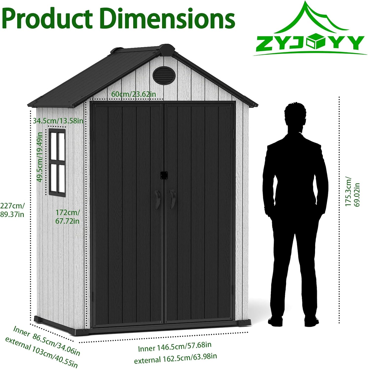 - Robust Double-Layer Floor : The double-layer resin floor provides strong support for heavy machinery and resists abrasion. This ensures your tools and lawn equipment remain protected and the shed stays stable on level grounds.
