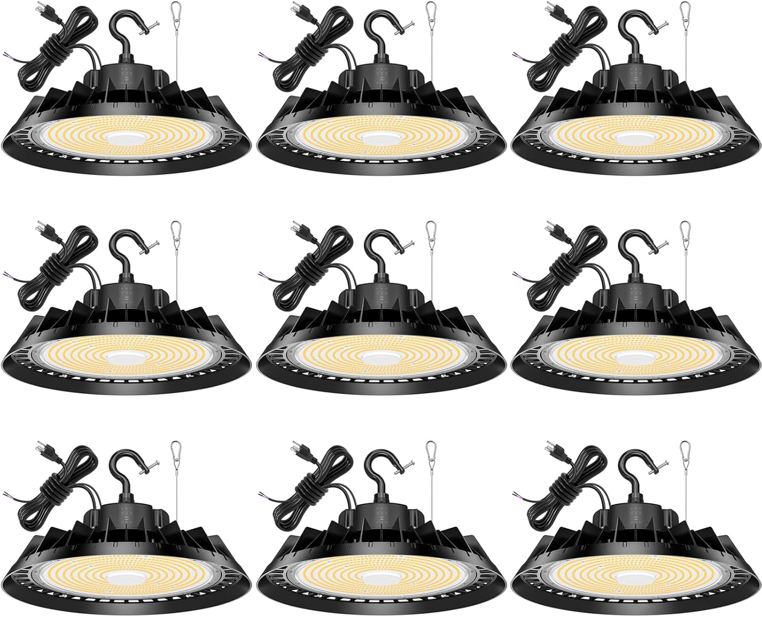 9Pack LED High Bay Lights, Super Bright 240W UFO High Bay LED Shop Lights, 36000LM 5000K, 0-10V Dimmable, 5' Cable Plug, IP65 Waterproof, ETL Listed Plug & Play Lighting for Gym Factory Warehouse