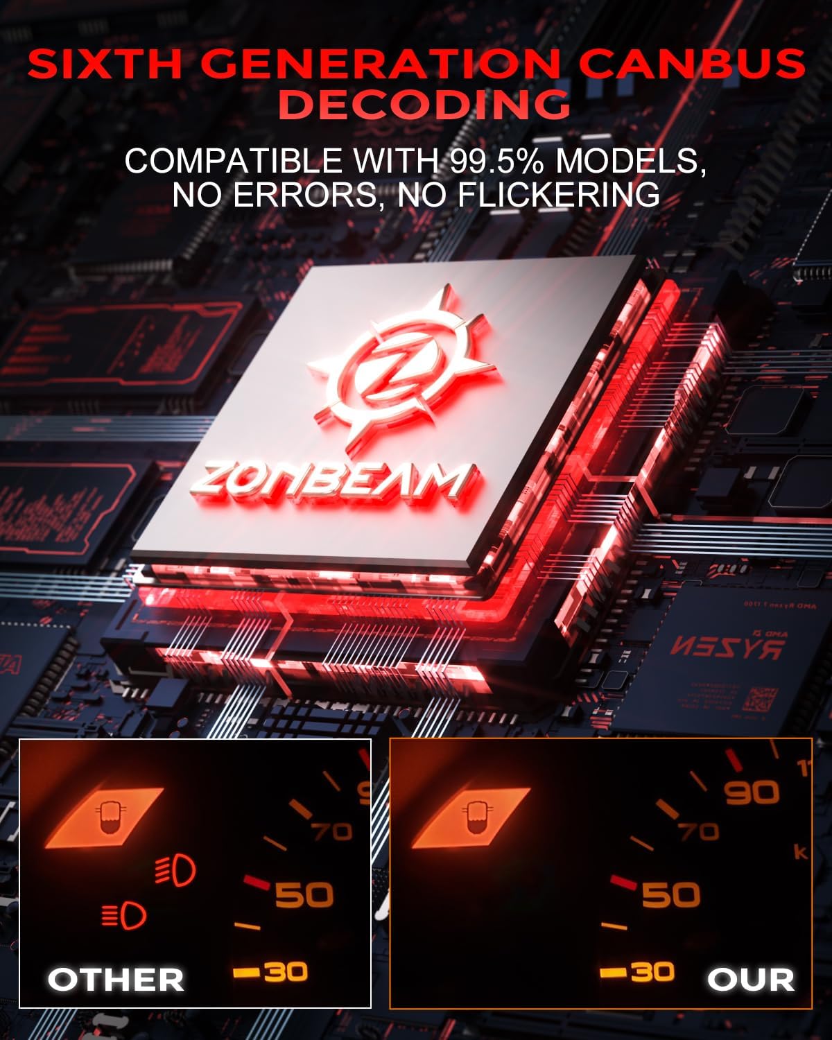 - [Super-Bright 40000LM] 2025 ZONBEAM 9005 led bulbs with 40000lm ultra-high lumen output per group compared to halogen and 6000k cool white light, illuminates all the details on the roadway at night, making night driving more comfortable and safer.