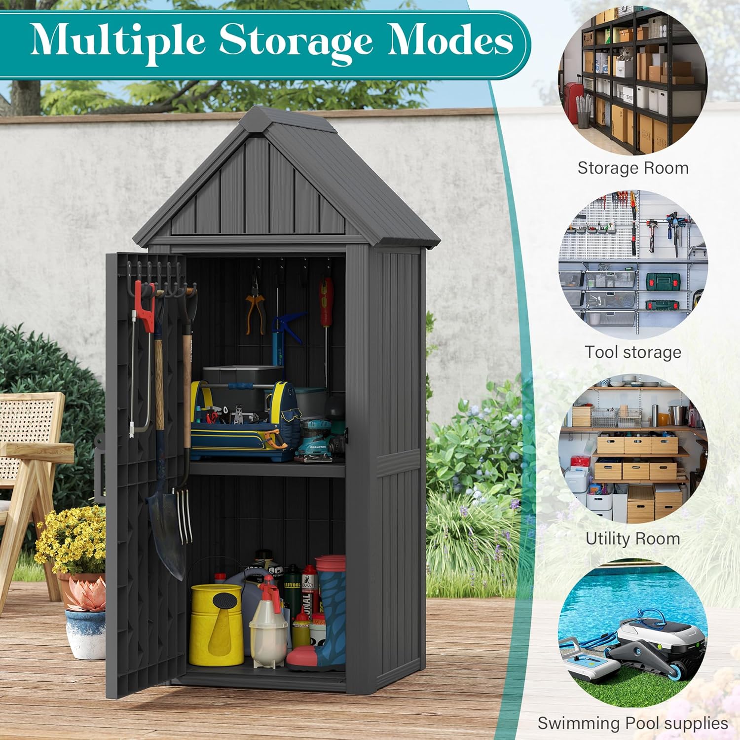 - Perfect Outdoor Storage: An ideal gift for any occasion, this multifunctional storage shed helps organize outdoor spaces—the perfect waterproof outdoor storage cabinet for gardeners, grill enthusiasts, and organization lovers!