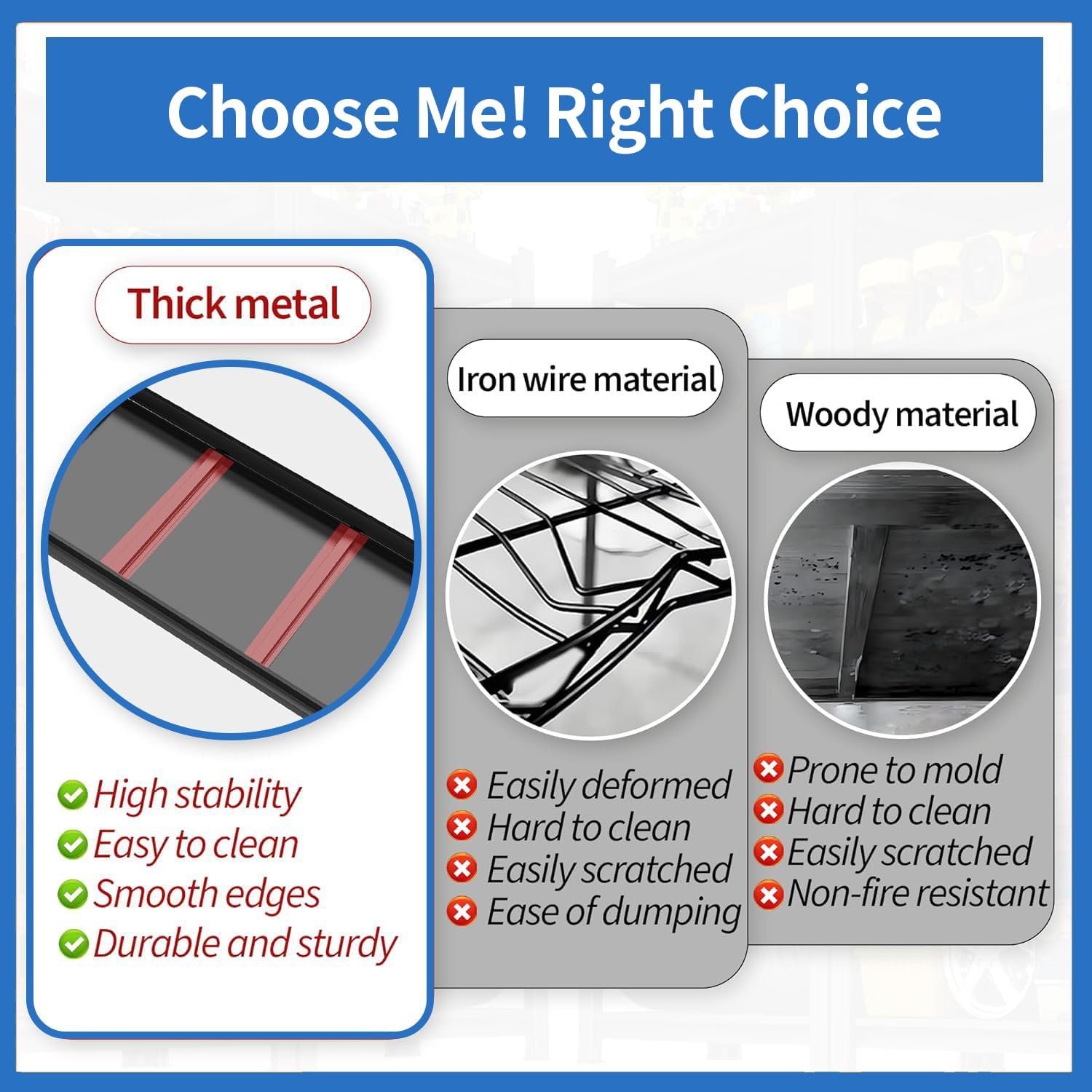 - 【Quick installation of a set of garage storage shelves in 10 minutes】This metal storage shelf adopts an interlocking design, which does not require any bolts or nuts for installation. It does not even require any installation tools. A set of 5-Tier metal shelves can be installed by hand in 10 minutes.